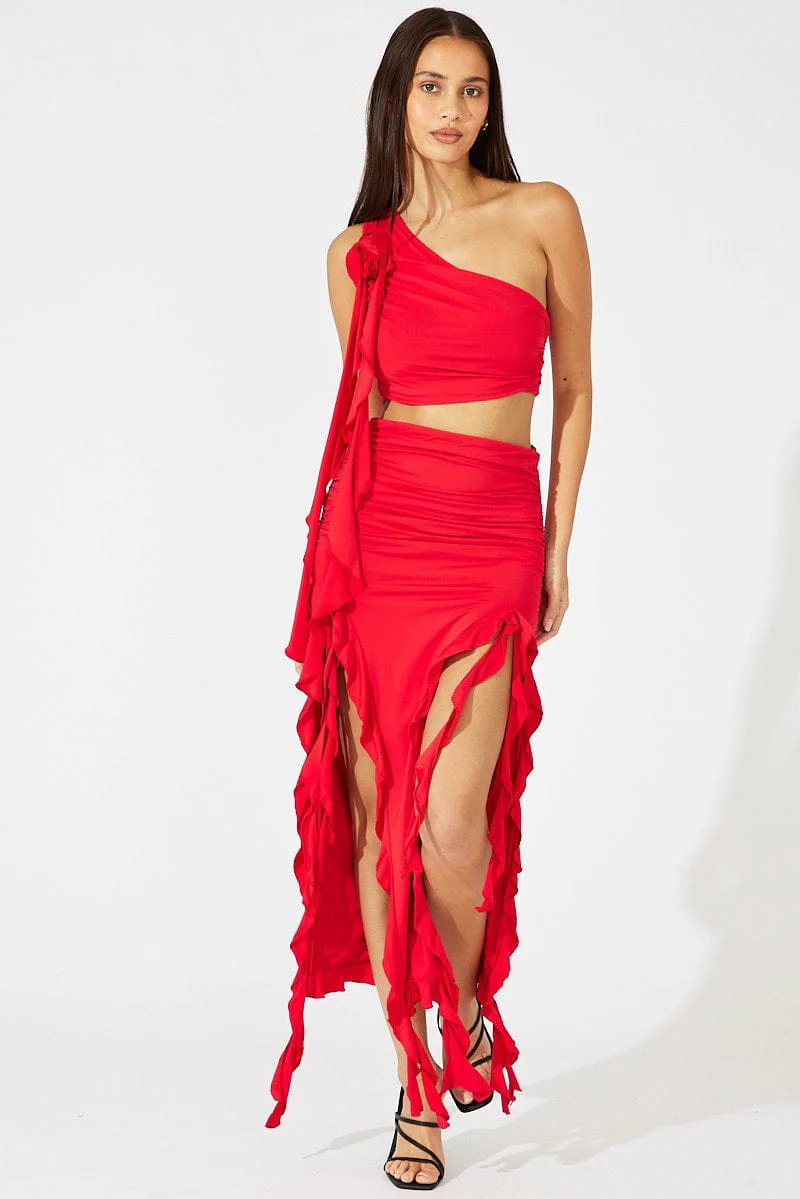Red Ruffle Maxi Skirt