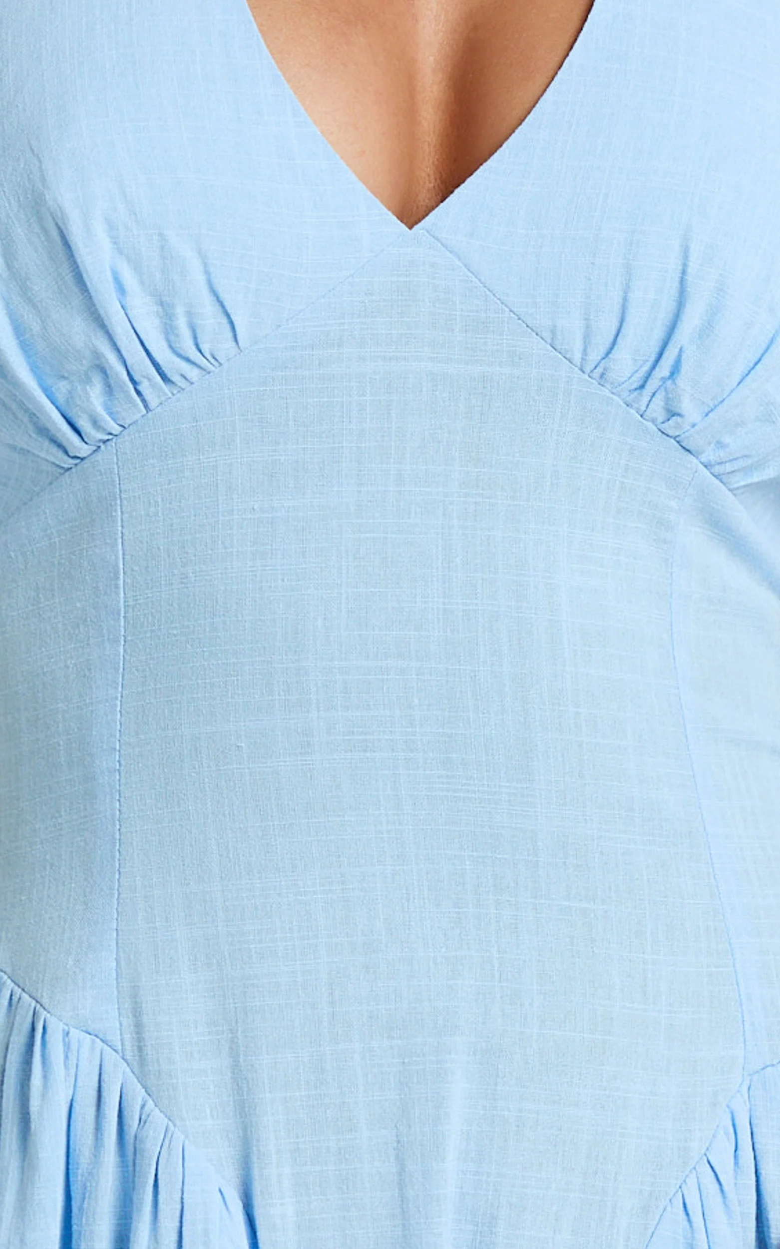 Benita Midi Dress - Scoop Neck Ruched Fitted Dress in Blue