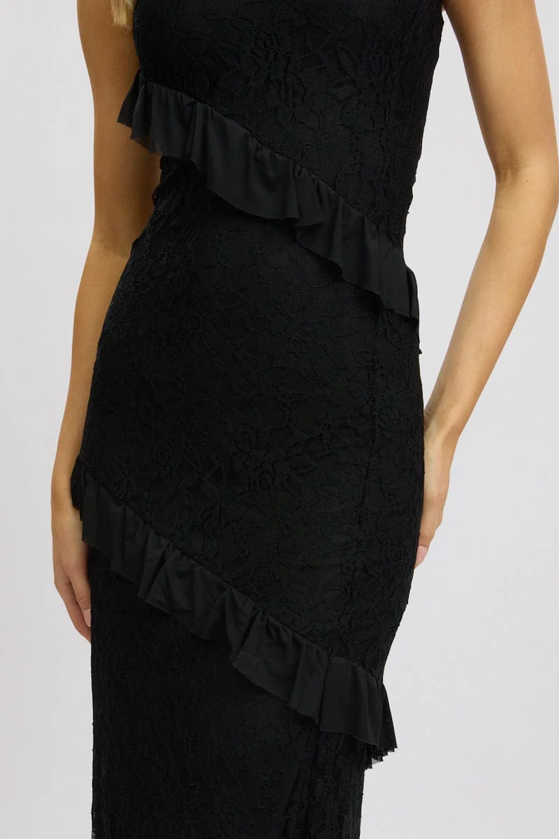 Black Bodycon Dress Boob Tube Ruffle Midi Lace