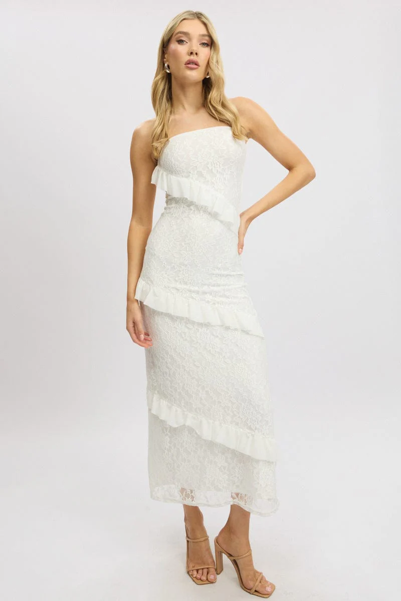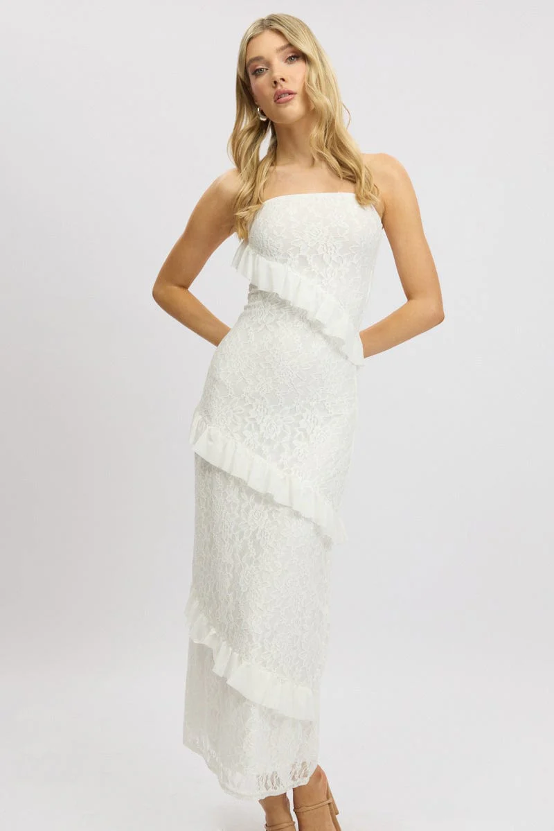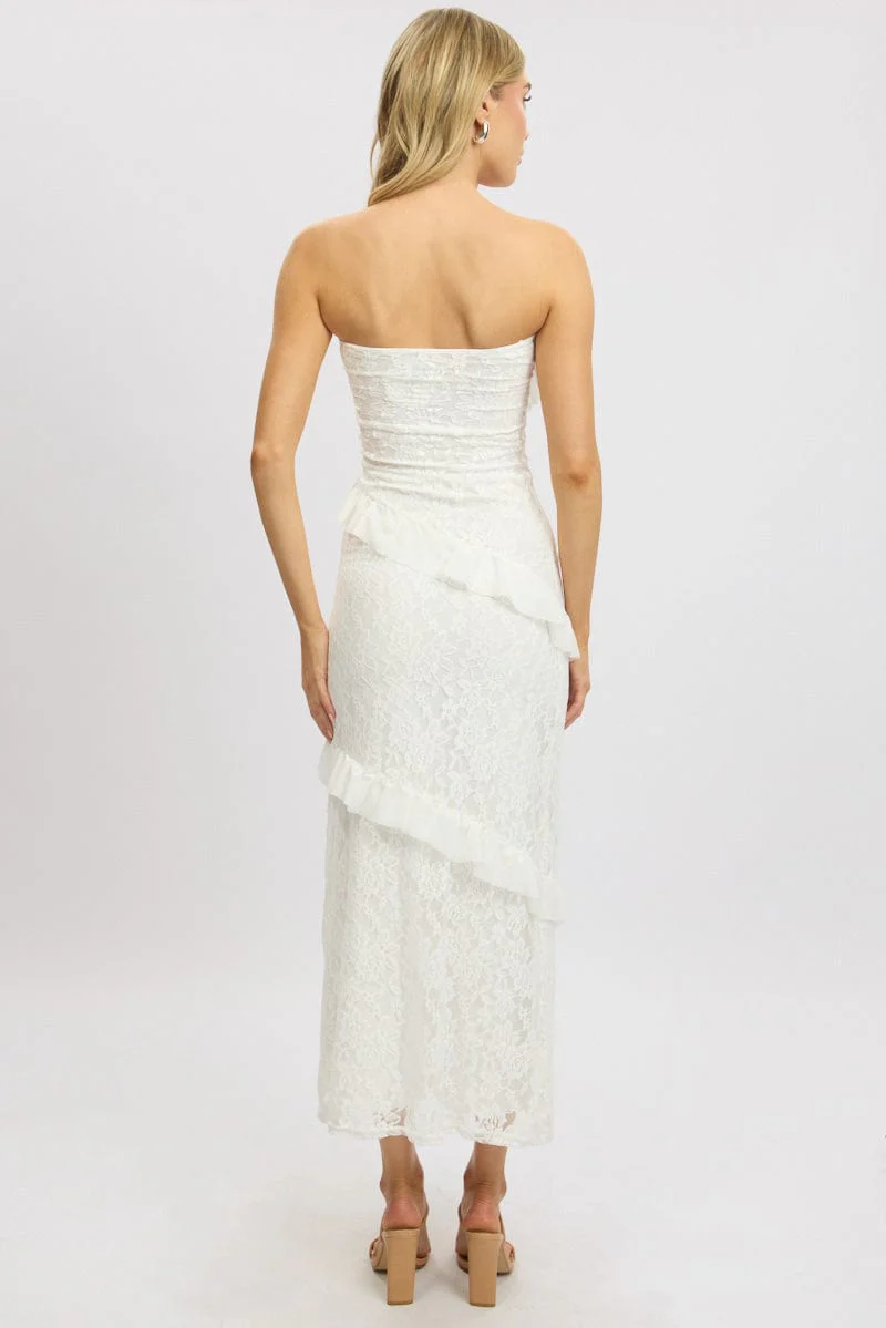 White Bodycon Dress Boob Tube Ruffle Midi Lace