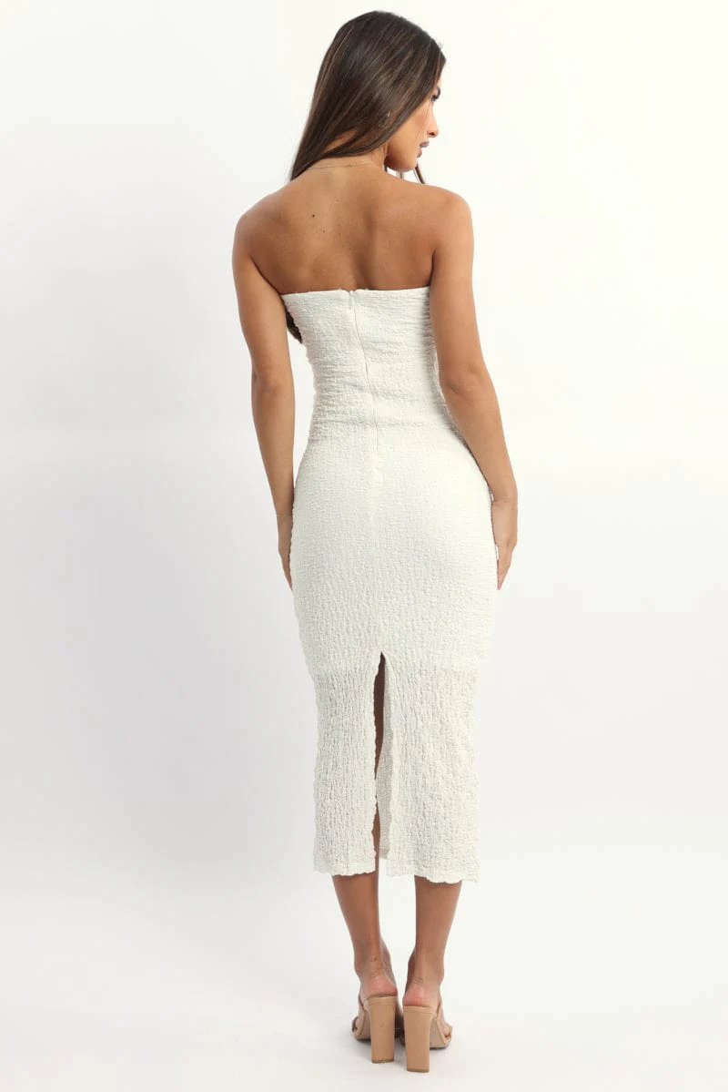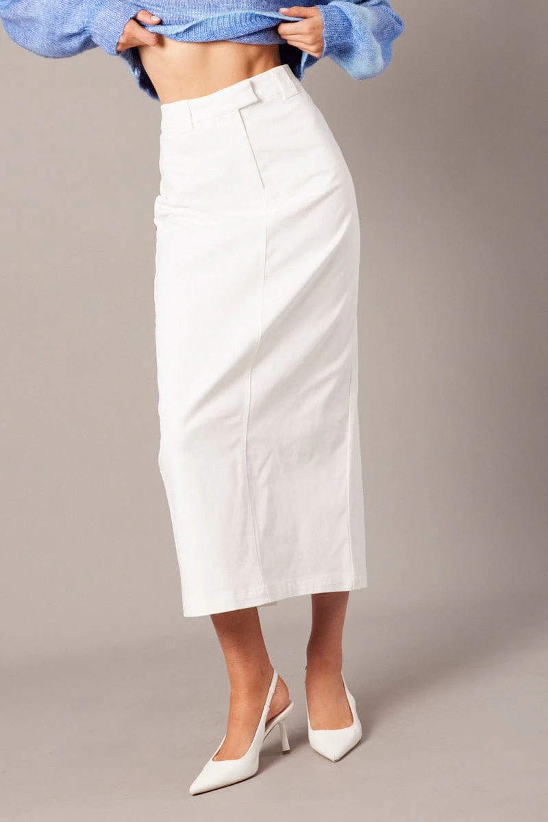 White Crochet Skirt High Rise Elastic Waistband Midi