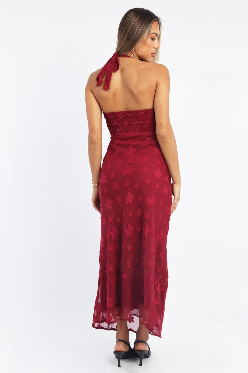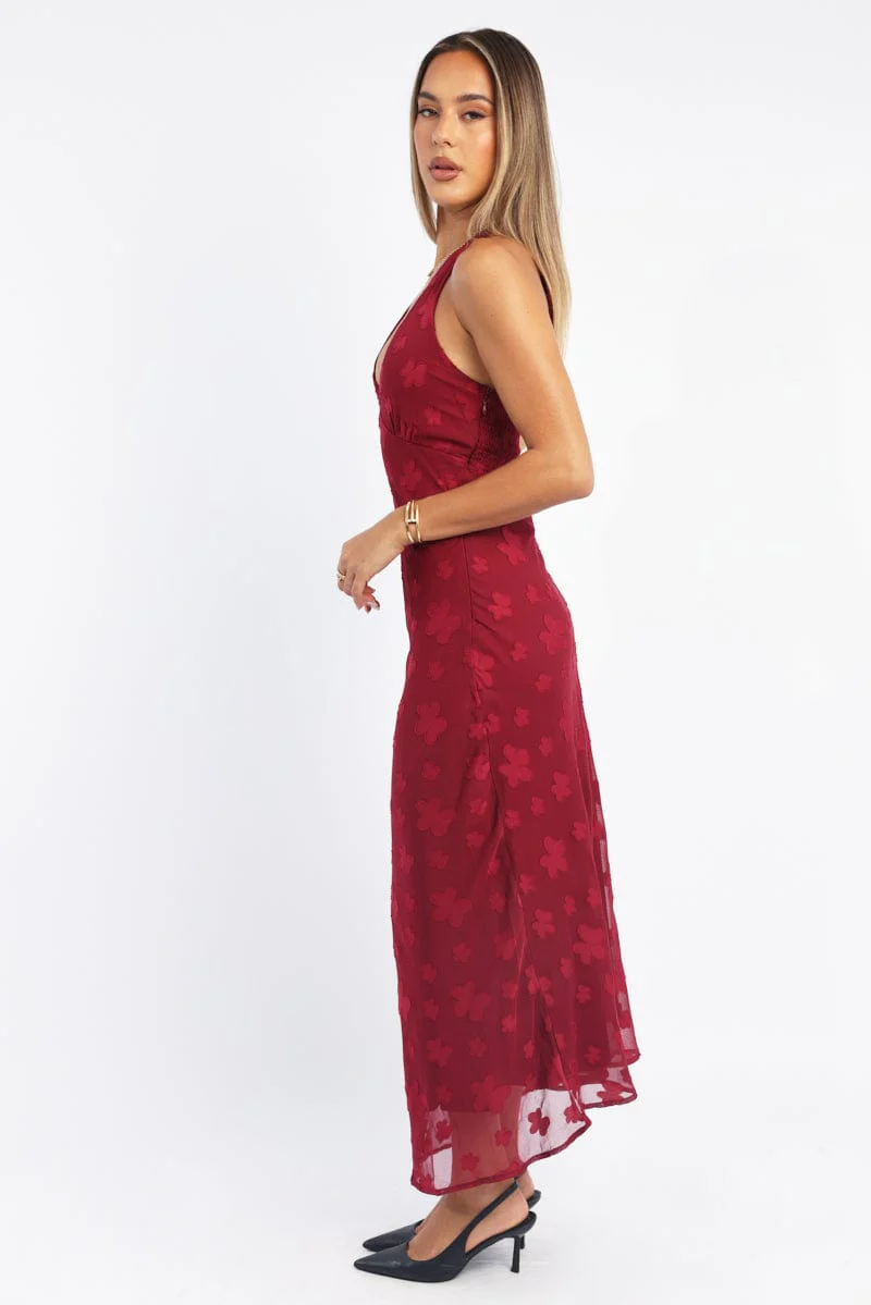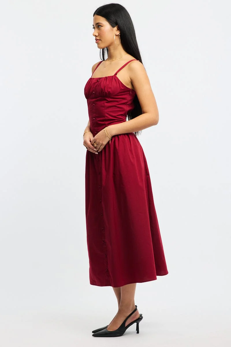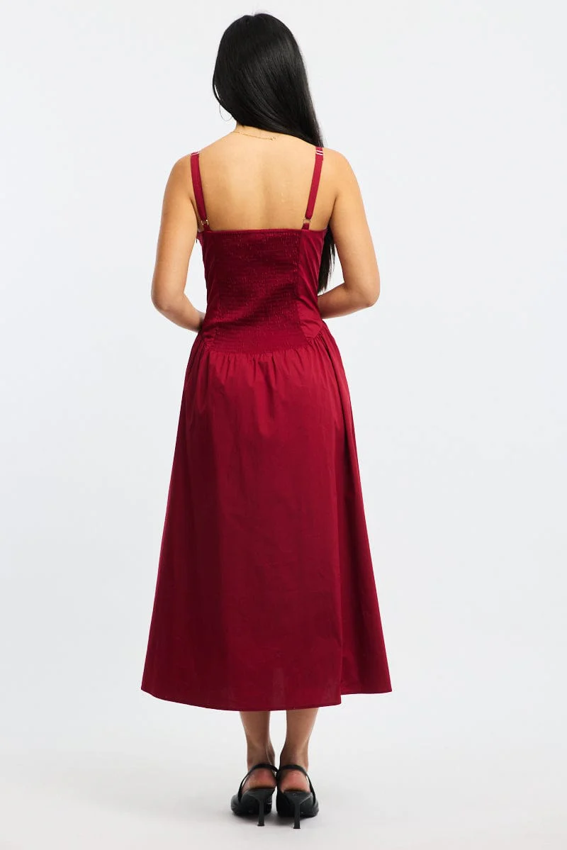 Red Check Asymmetric Midi Skirt Elastic Waist Frill Hem