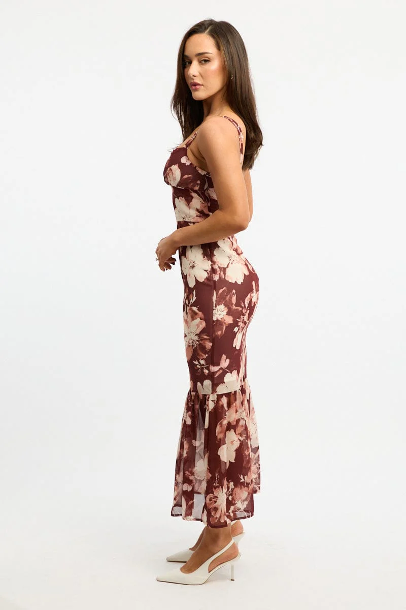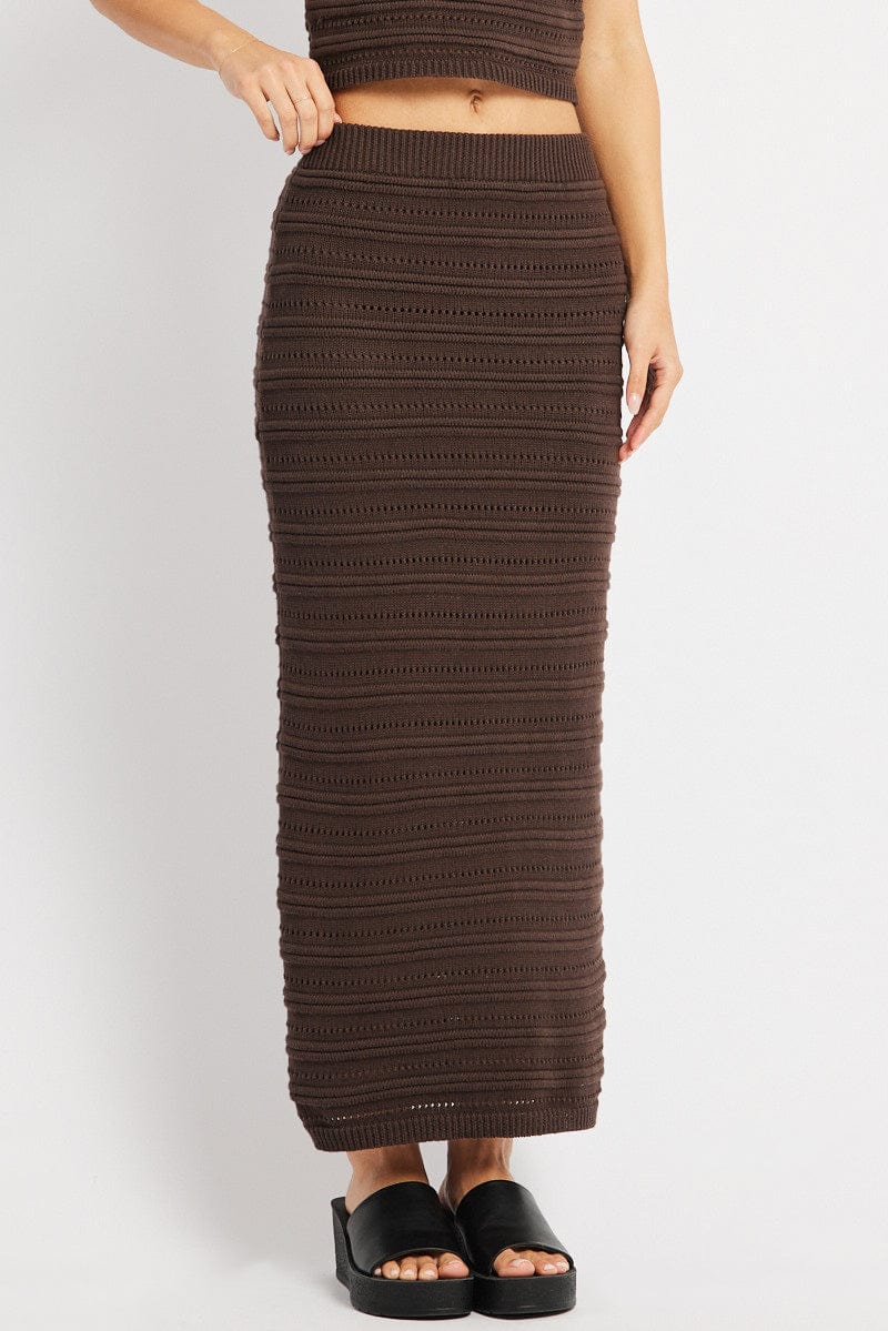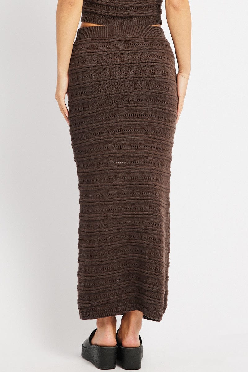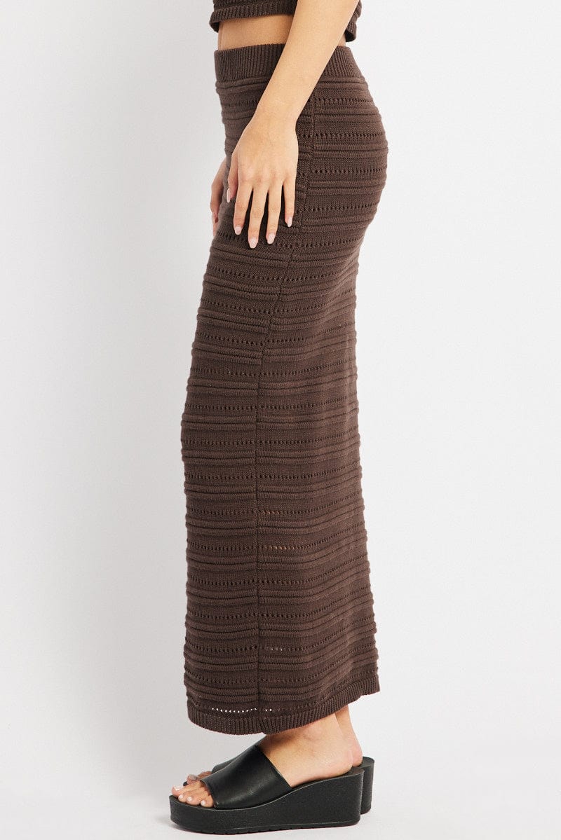 Brown Crochet Skirt High Rise Elastic Waistband Midi