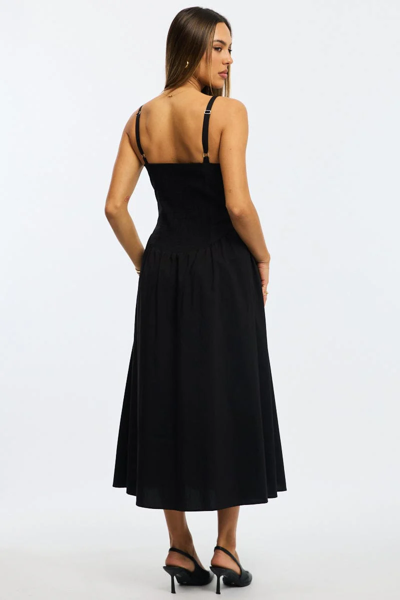 Blue Stripe Midi Dress Ribbon Detail Strappy