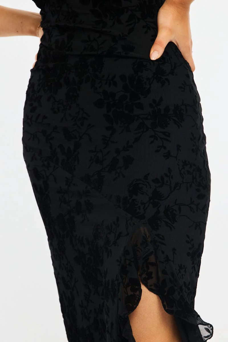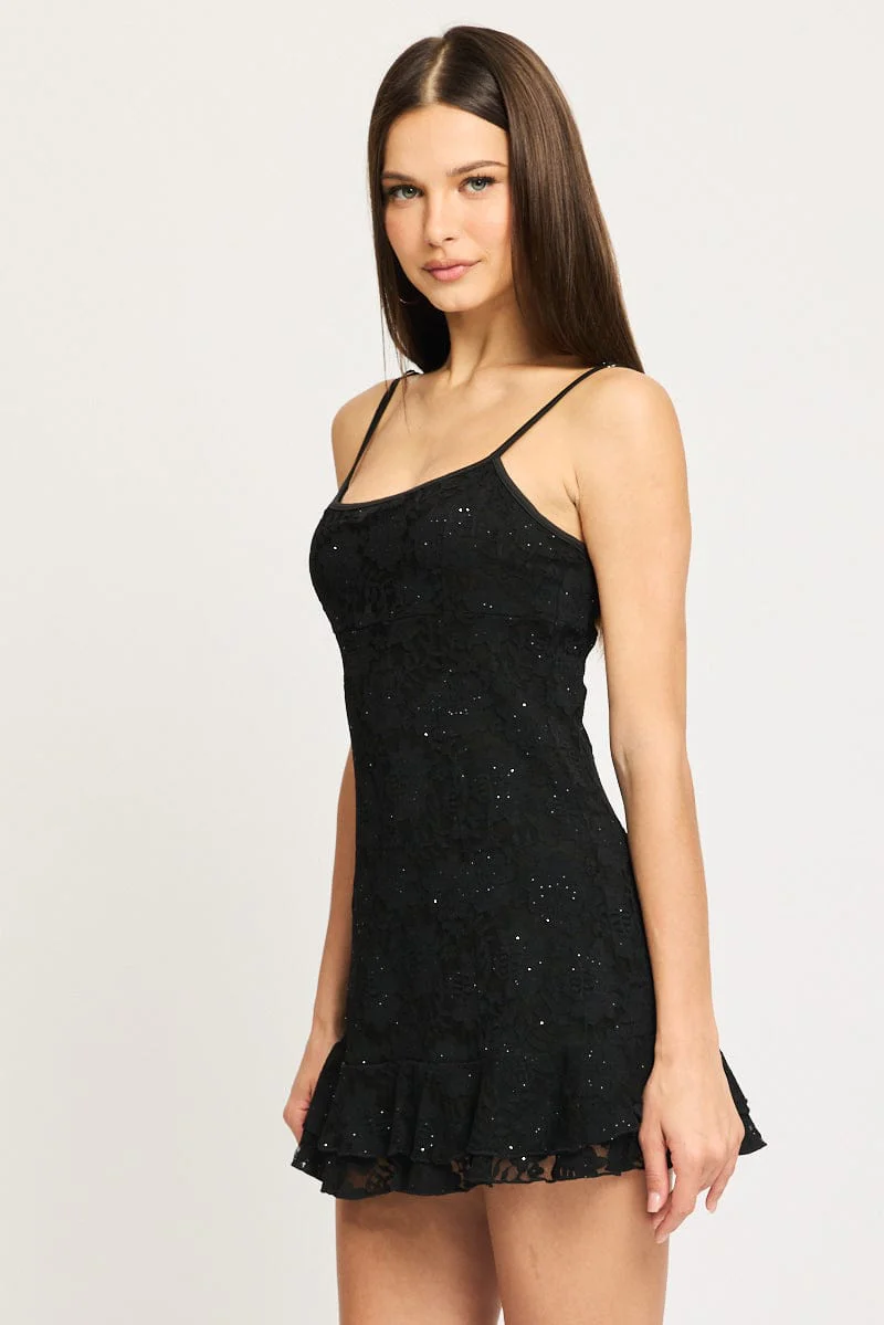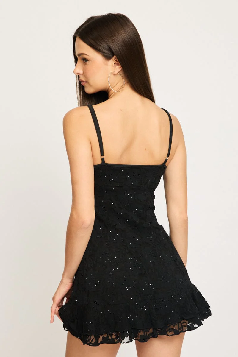 Black Mini Skort Skirt High Waisted Lace Hem Ponte
