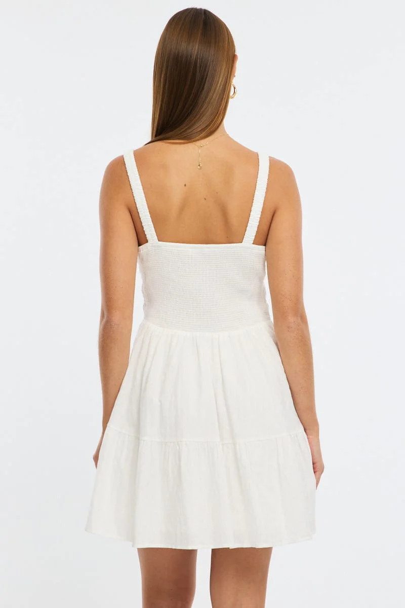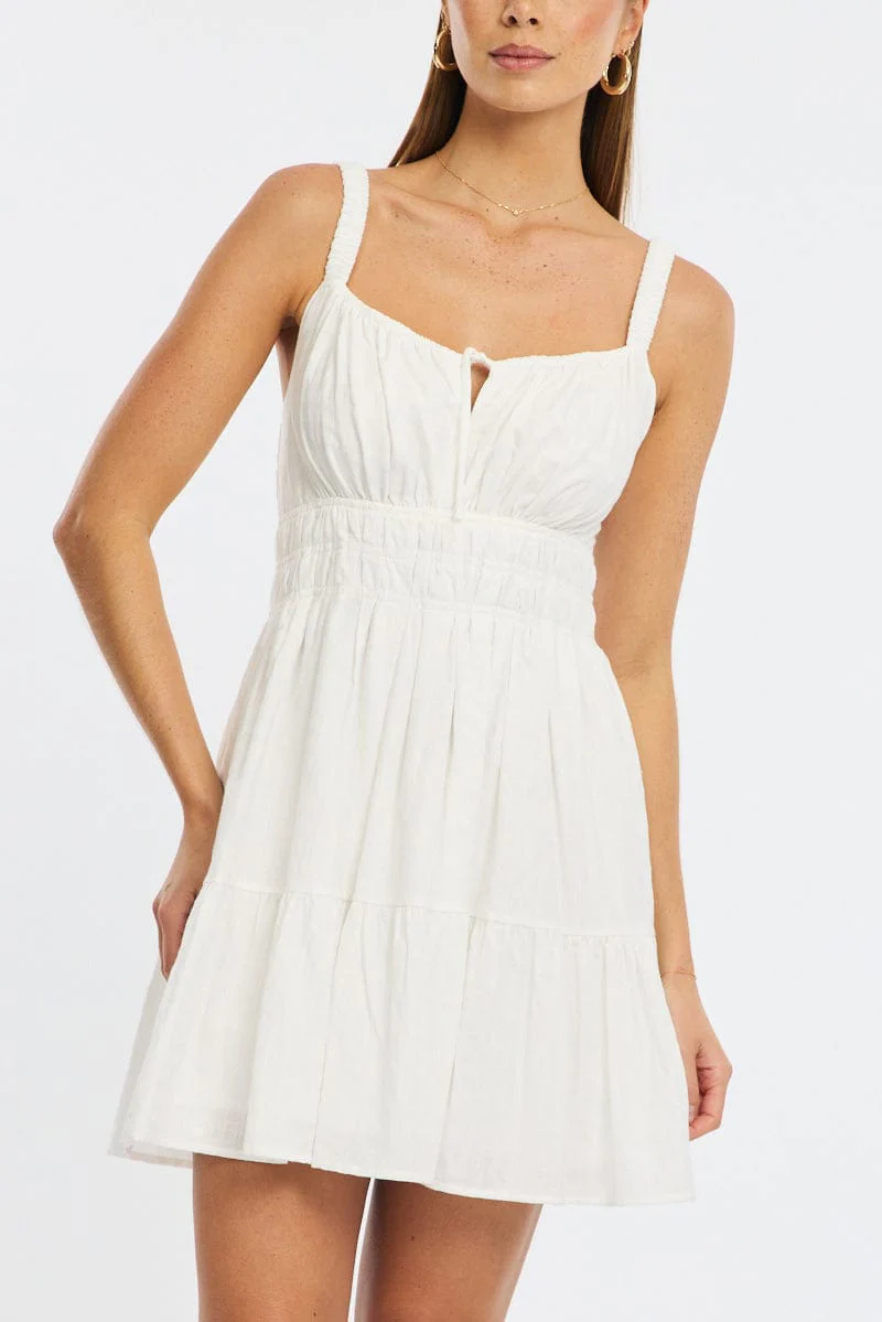 White Mini Skort Skirt Side Tie Shorts Lined Linen Blend