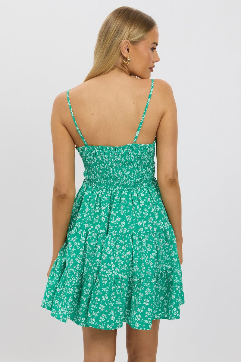 Green Ditsy Fit And Flare Dress Mini