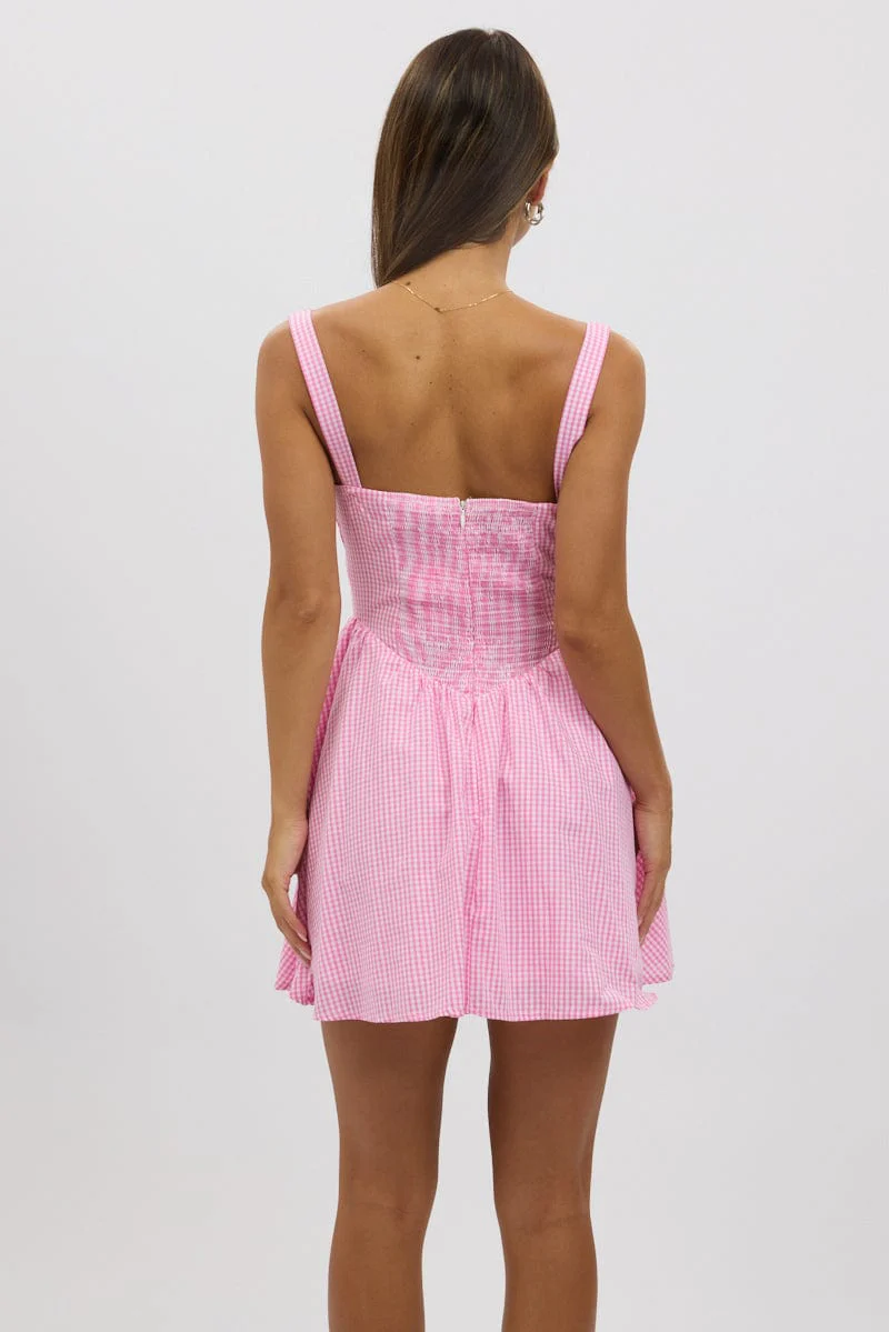 Pink Check Fit And Flare Dress Mini