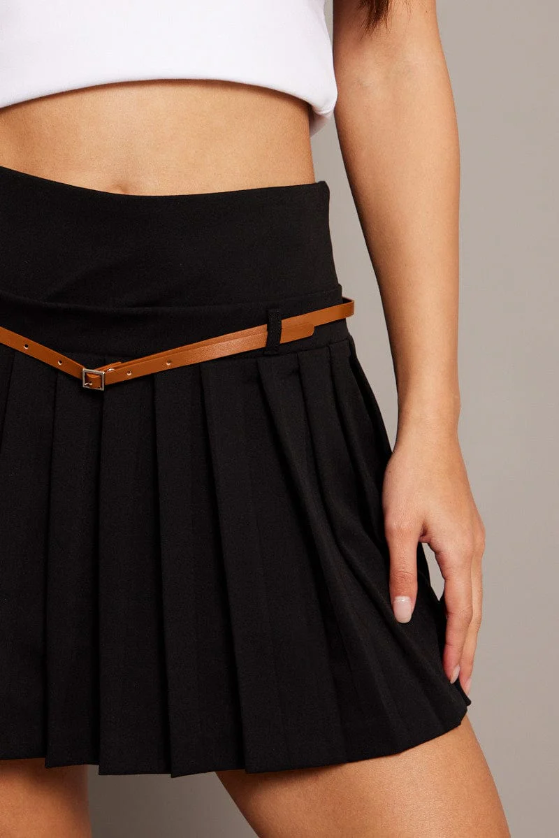 Black Tennis Skirt Mini Belted