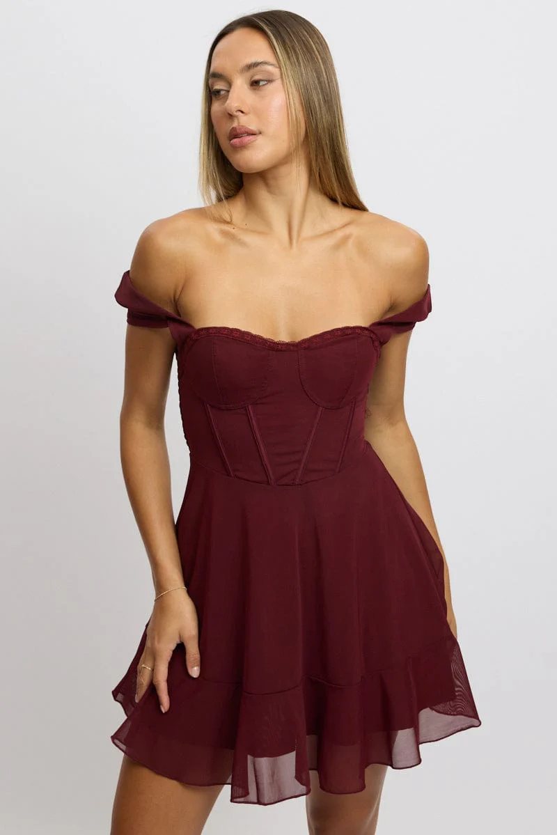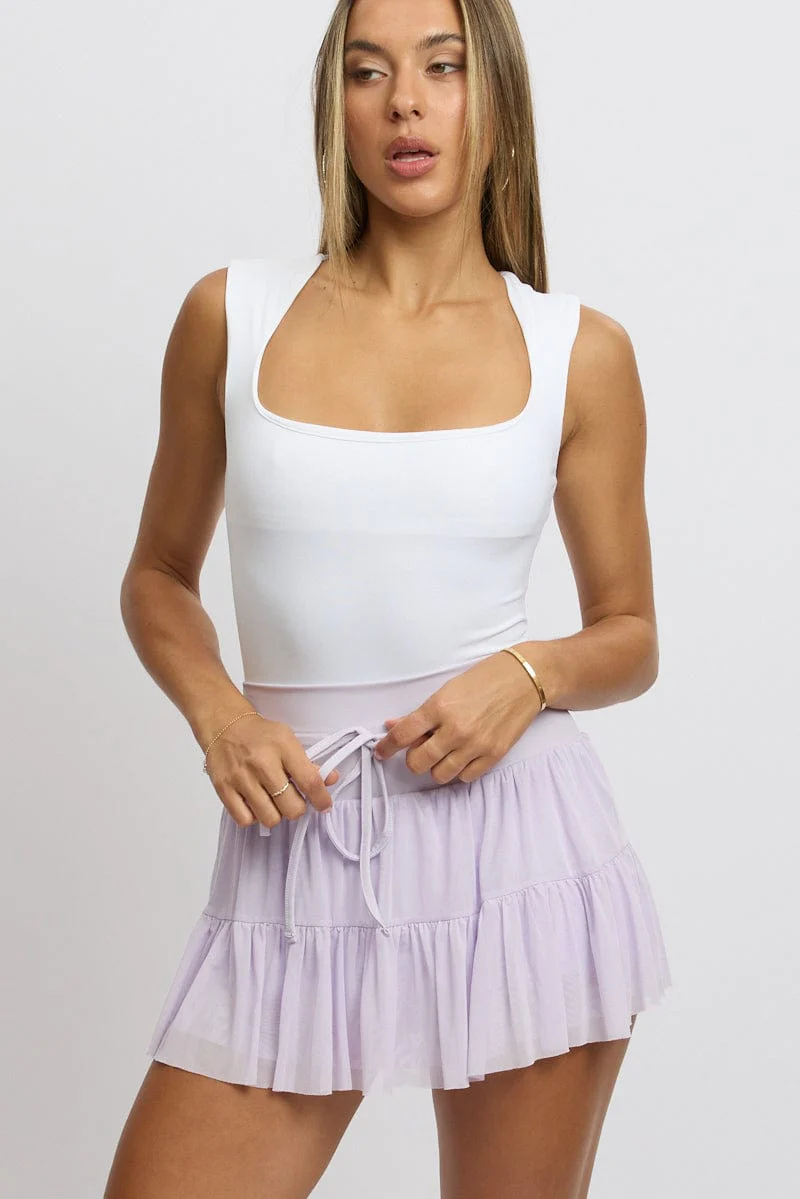 Purple Flare Skort Skirt High Rise Mini Mesh Tiered