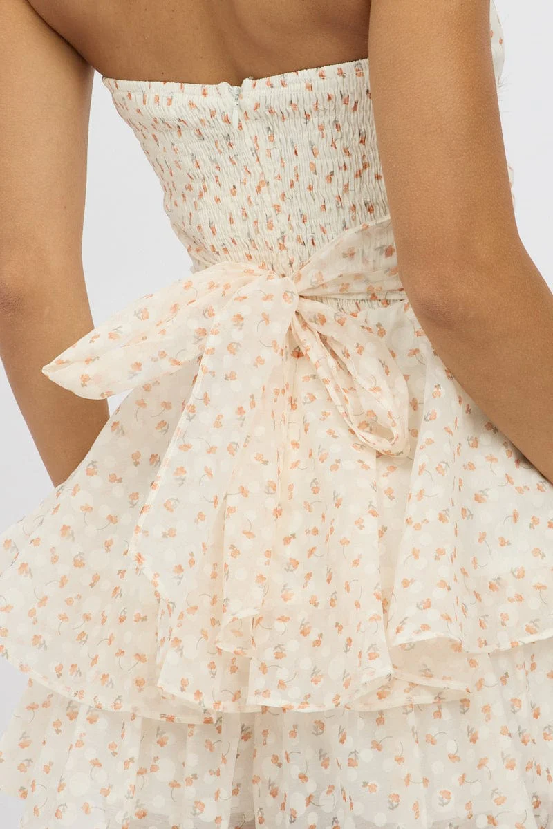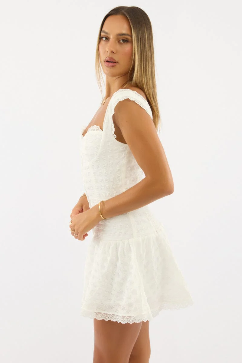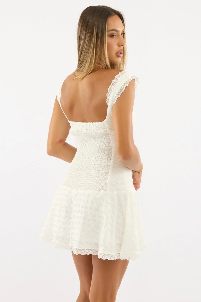 White Mini Skirt Elastic Waist Layered Broidery Eyelet