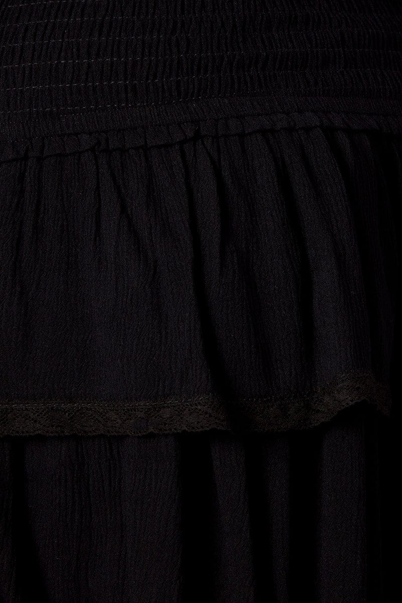 Black Strapless Dress Mini Frill Hem Mesh