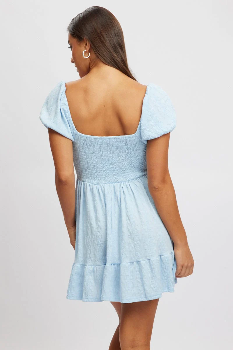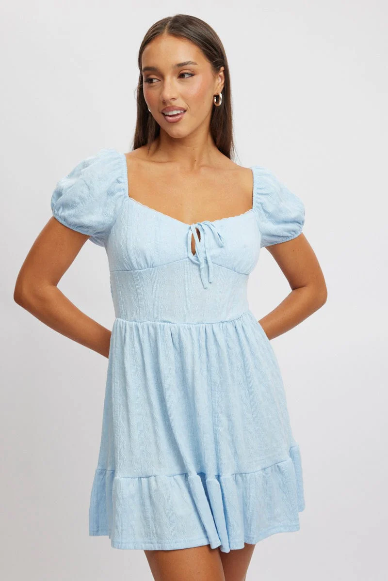 Blue Fit And Flare Dress Mini Lace