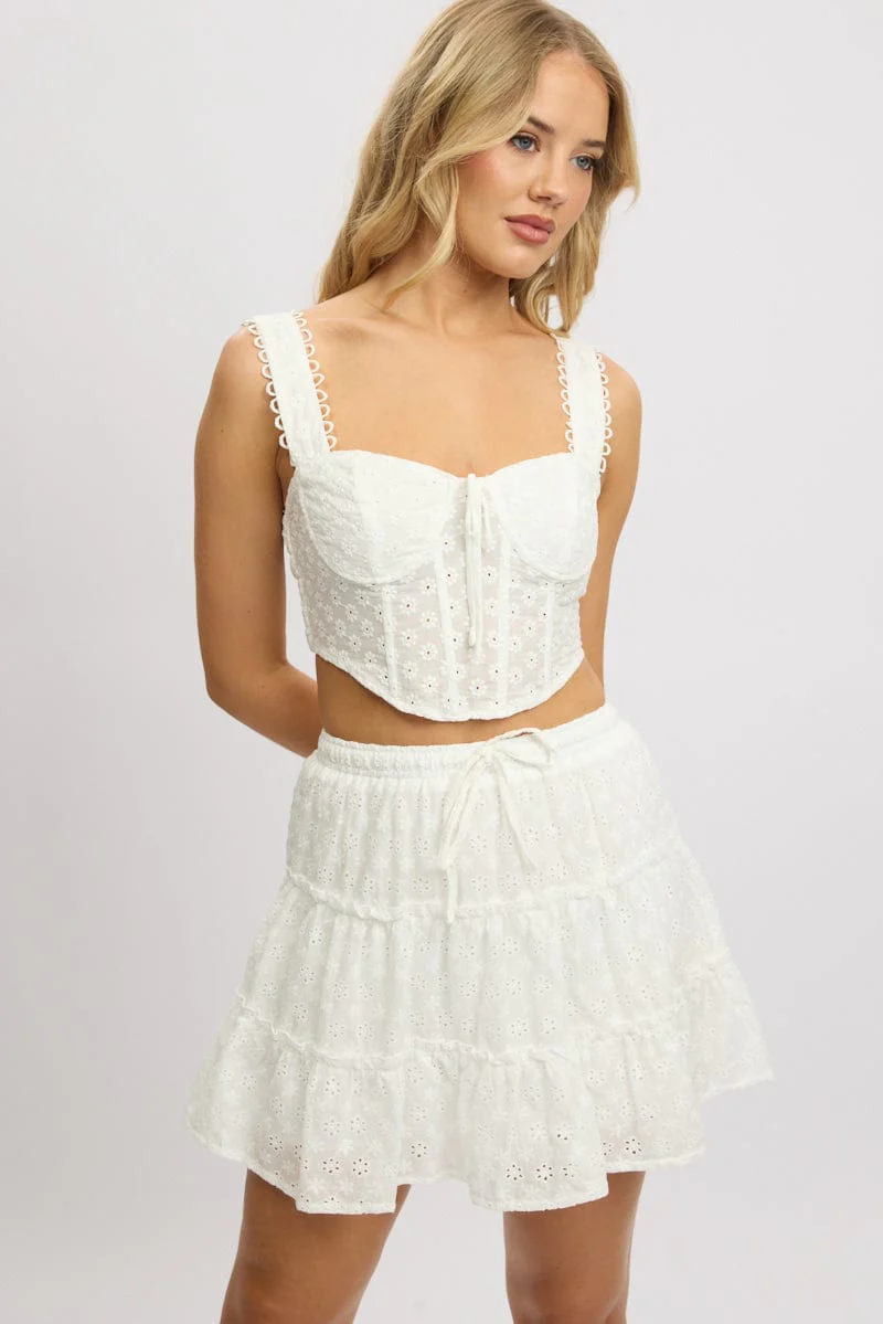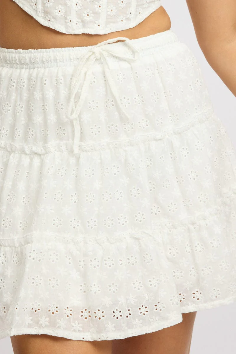 White Skater Skirt High Rise Tiered Mini Broidery Eyelet