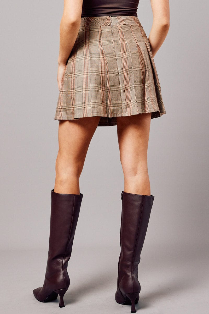 Beige Check Tennis Skirt Pleated Mini