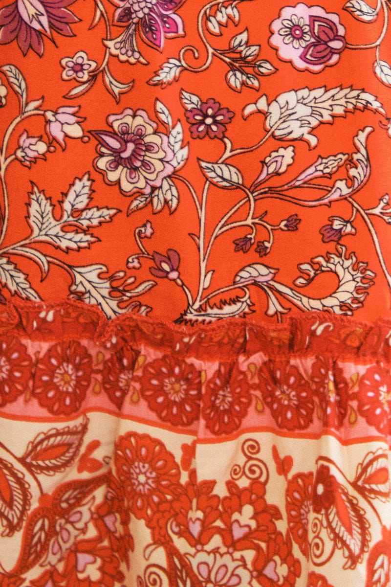 Red Mini Skirt High Waisted Skater Elastic Band Tiered