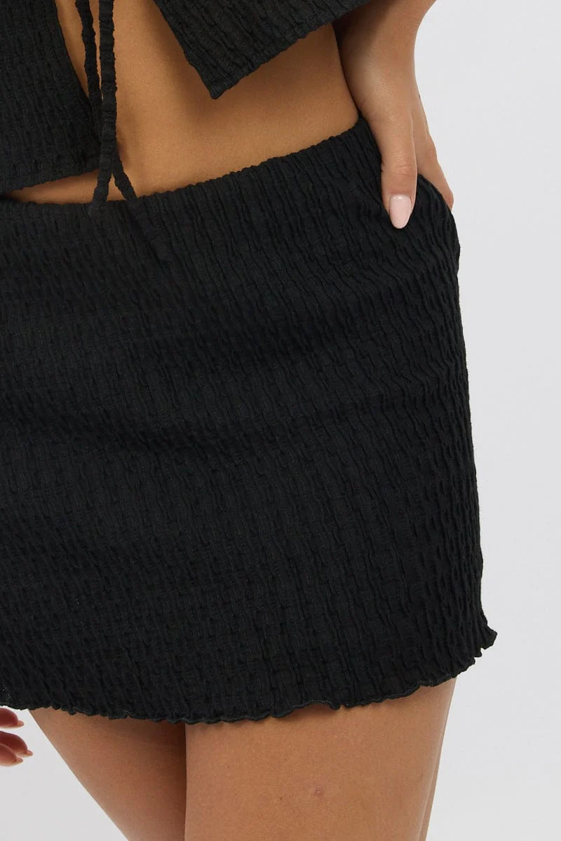 Black Mini Skirt Elasticated Waist Textured Lined