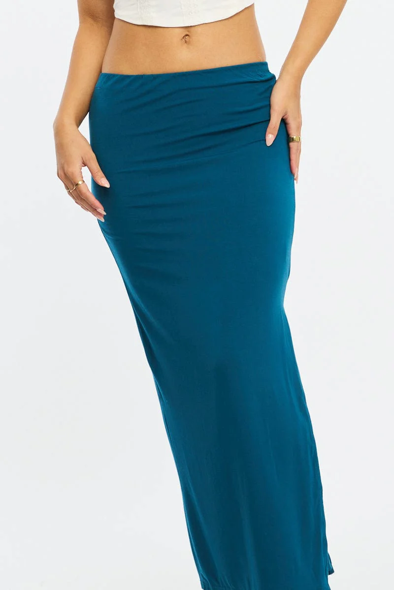 Blue Maxi Skirt Elasticated Waist Side Split Lined