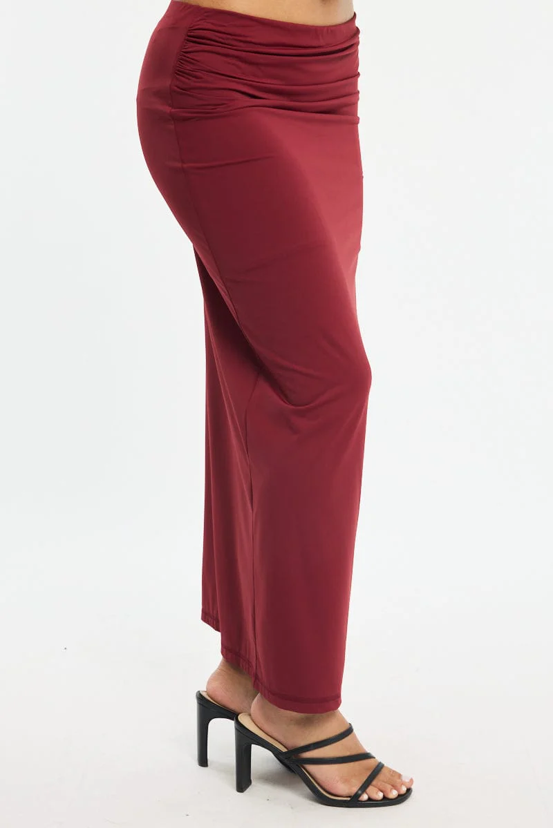 Red Ruched Maxi Skirt Elastic Waist