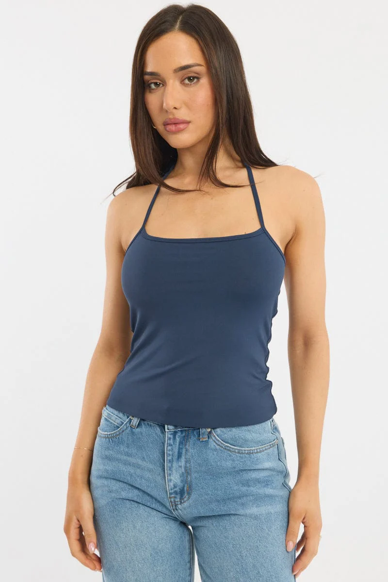 Blue Supersoft Halter Neck Top