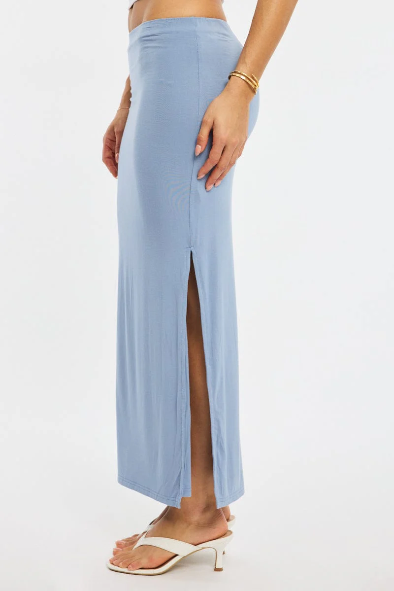 Blue Maxi Skirt Elasticated Waist Side Split Lined