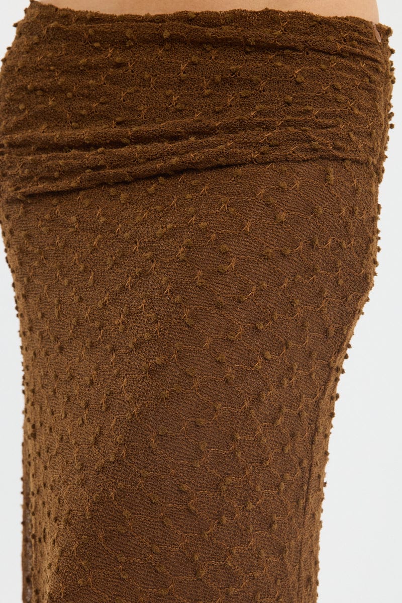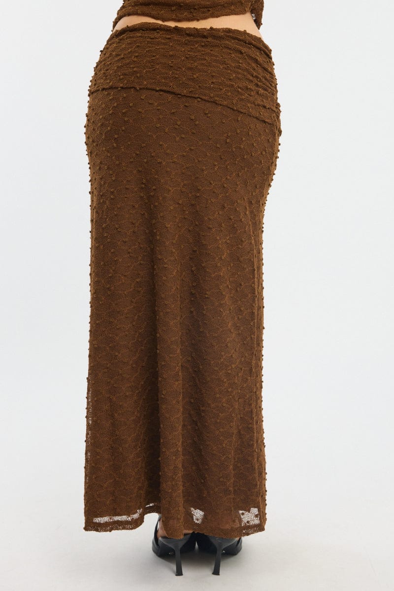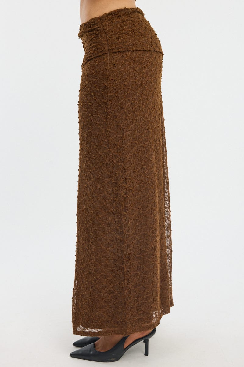 Brown Maxi Skirt Textured Gathered Waist Stretch Lined