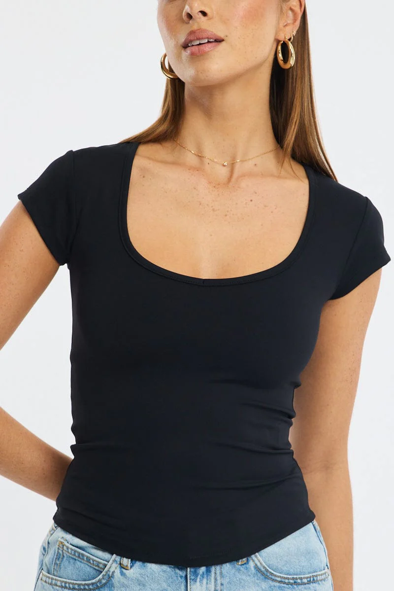 Black T-shirt Cap Sleeve Sweetheart Neck