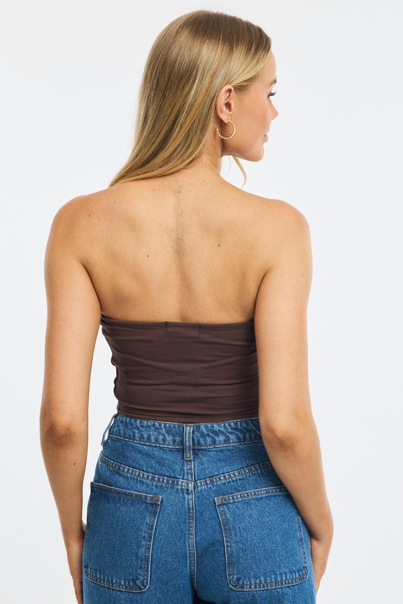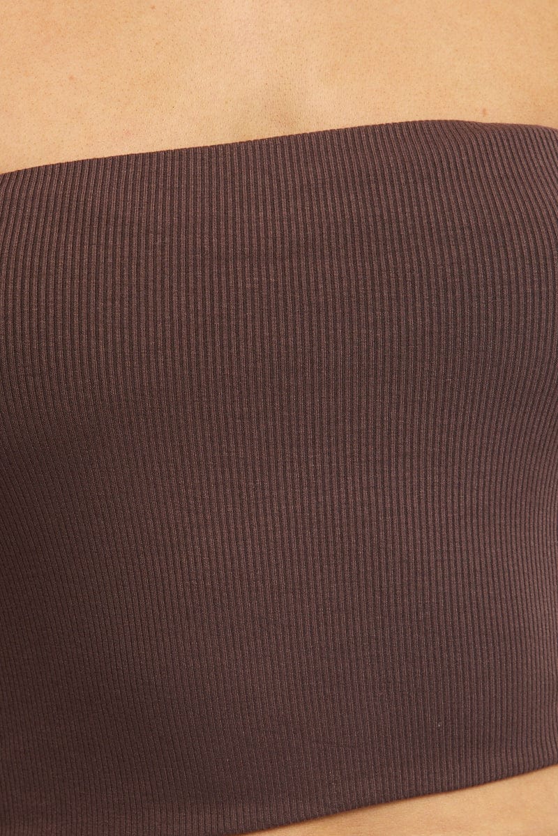 Brown Bandeau Top Sleeveless Strapless Rib
