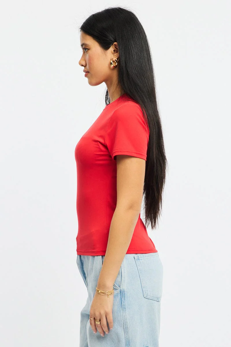 Red T-shirt Short Sleeve Crew Neck