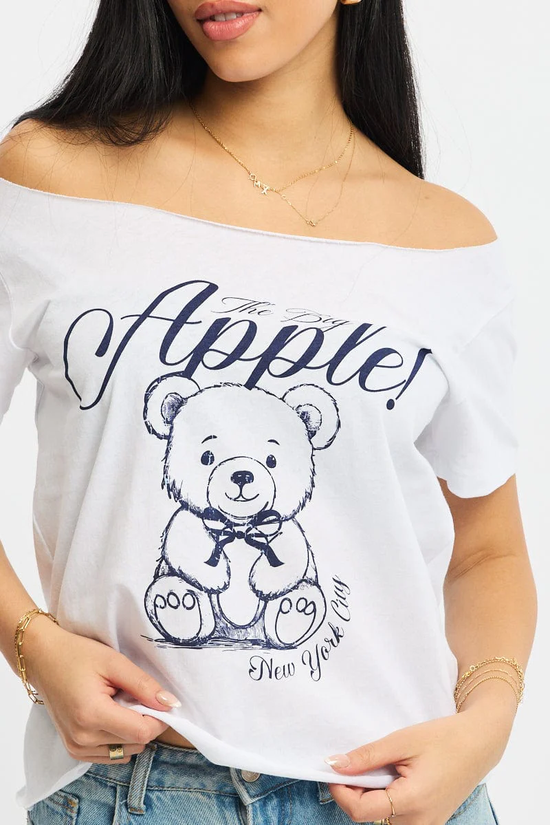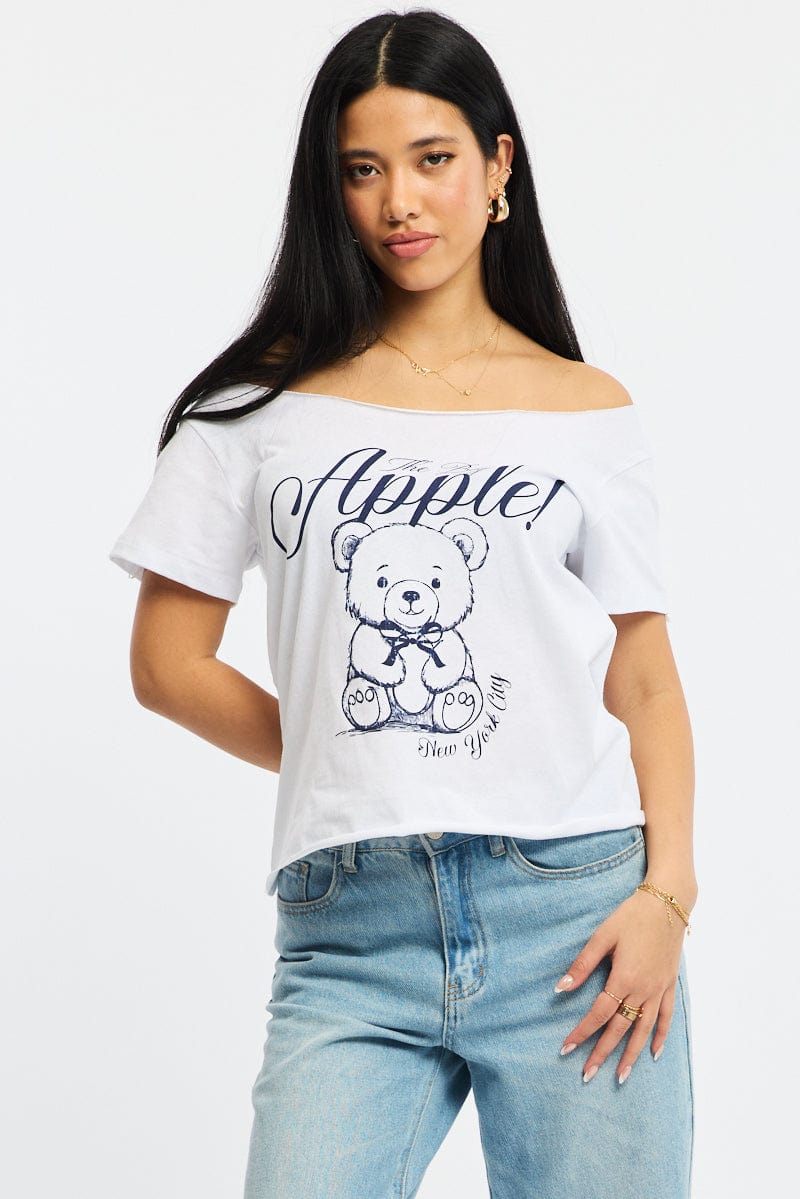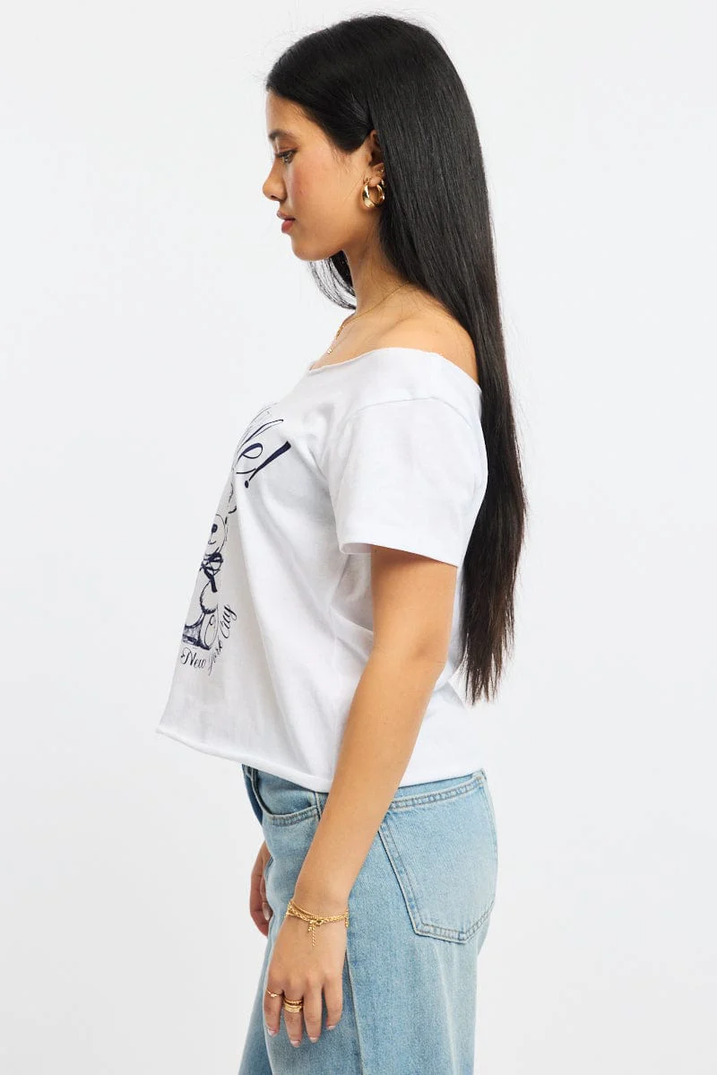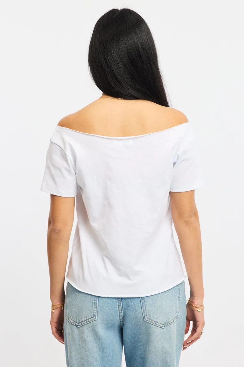 White Graphic Tee Off Shoulder