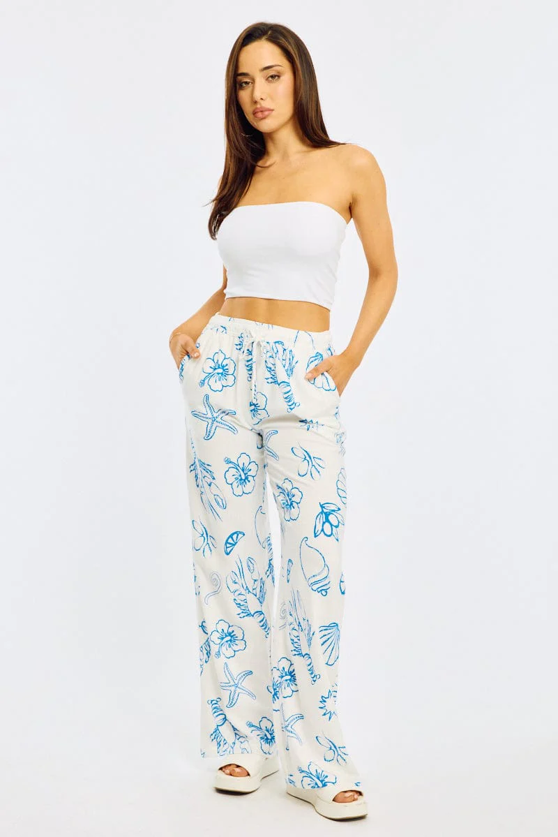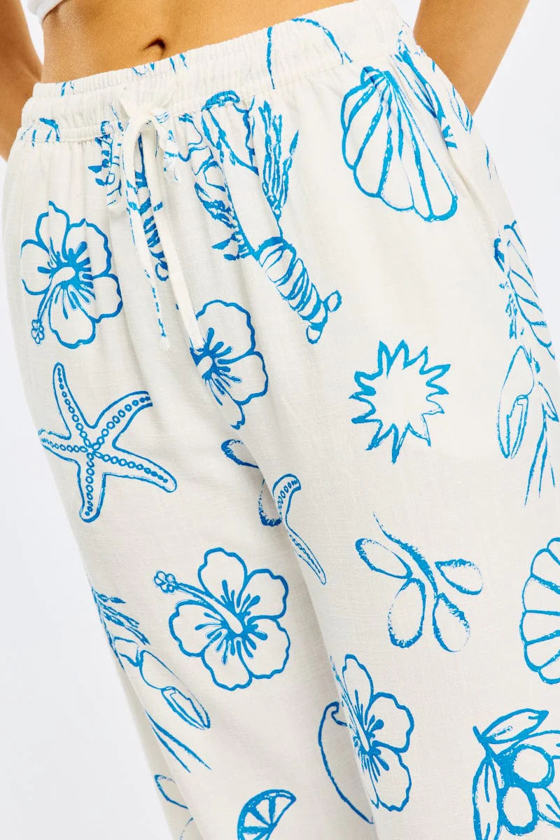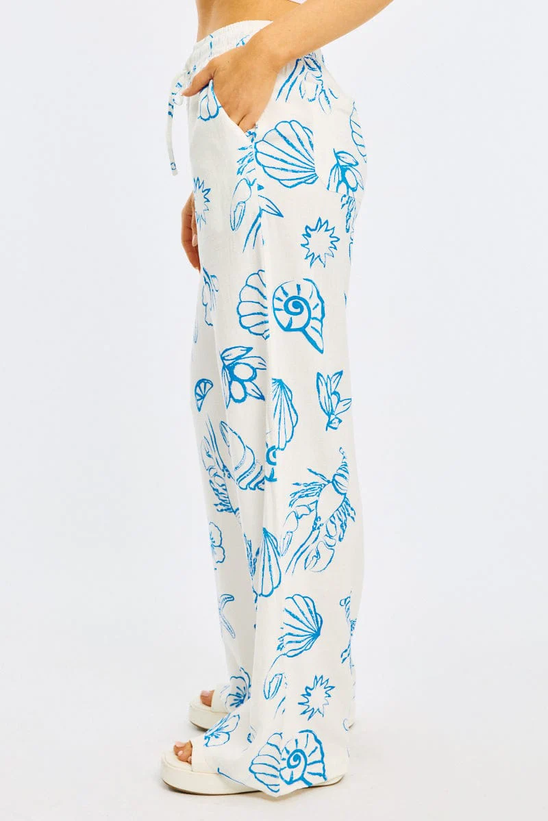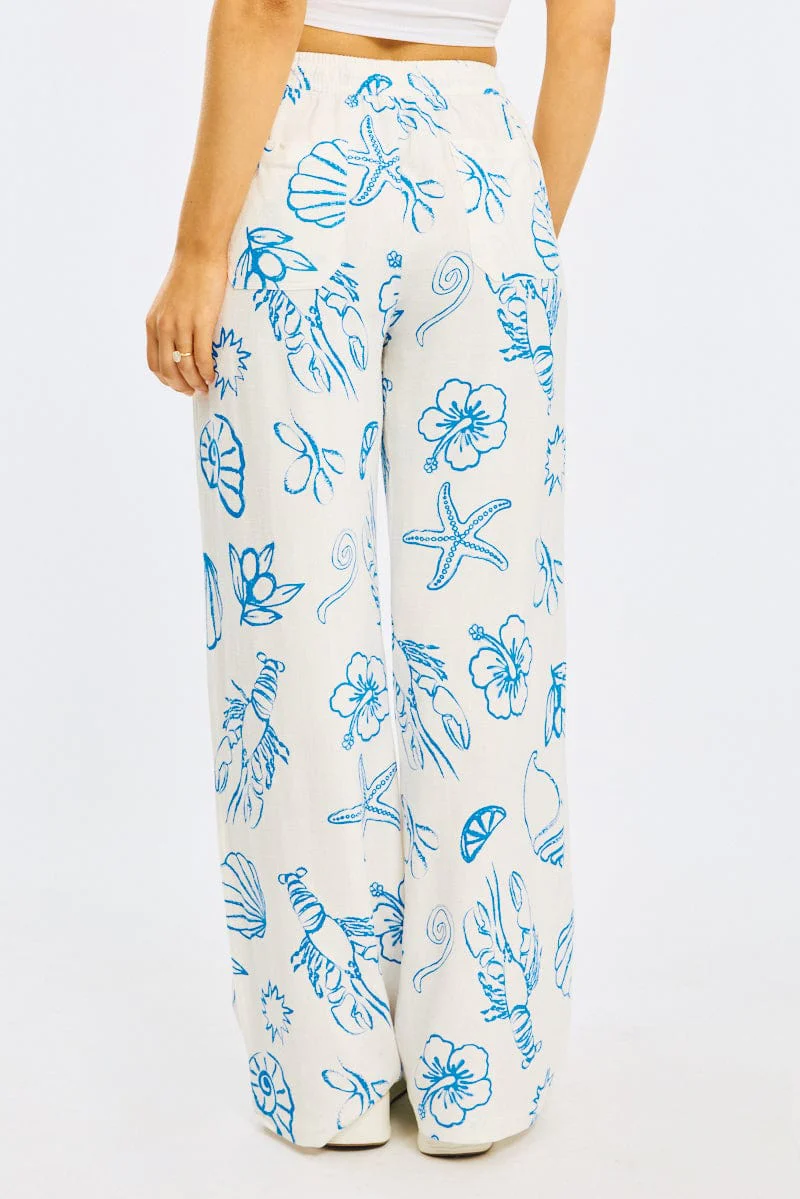 Blue Abstract Wide Leg Pants Elasticated Waist