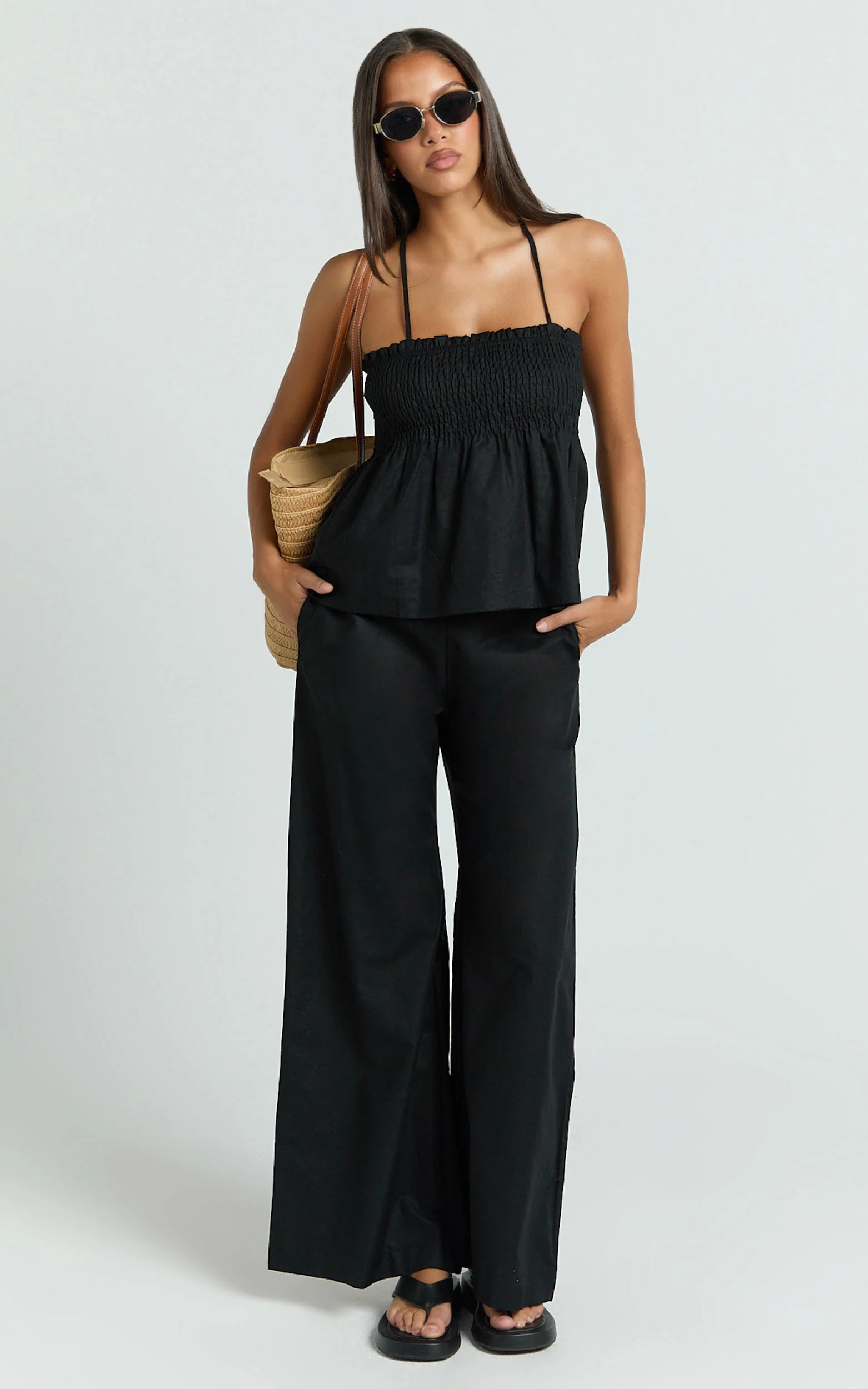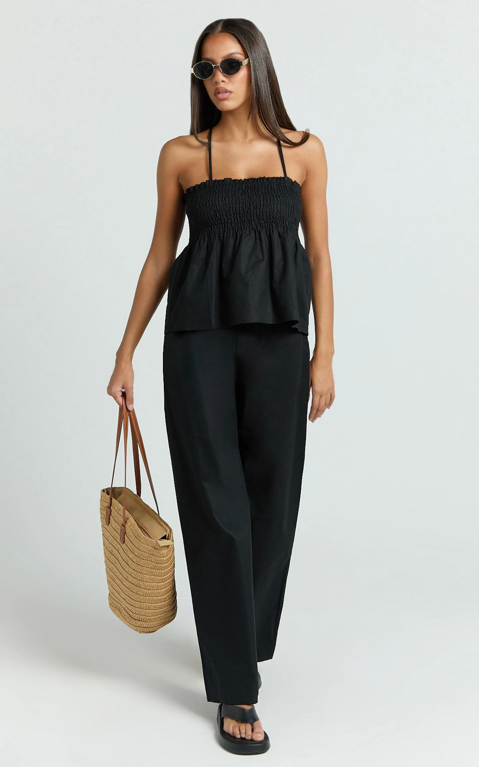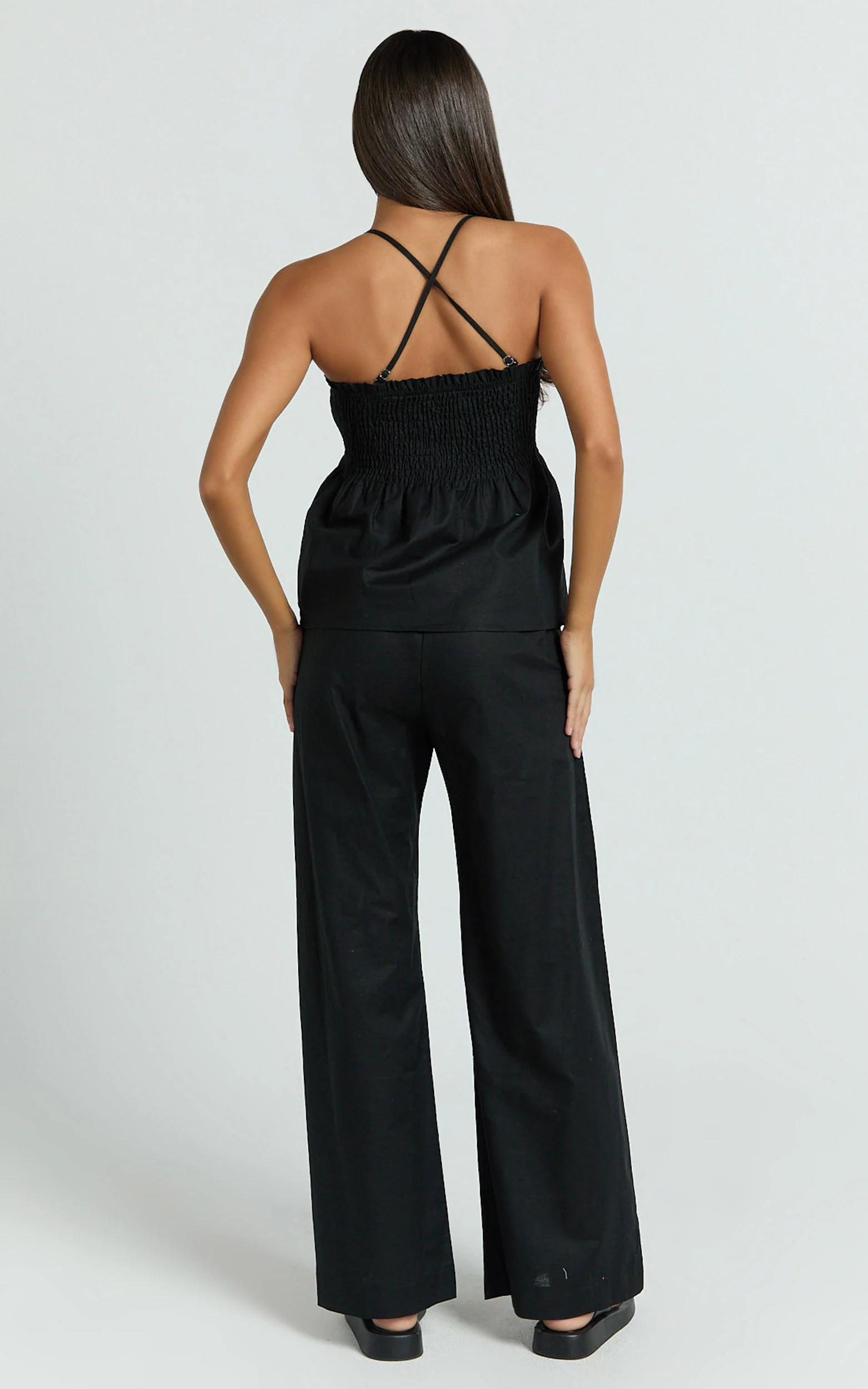 Alma Two Piece Set - Cotton Cami Pant Set in Black