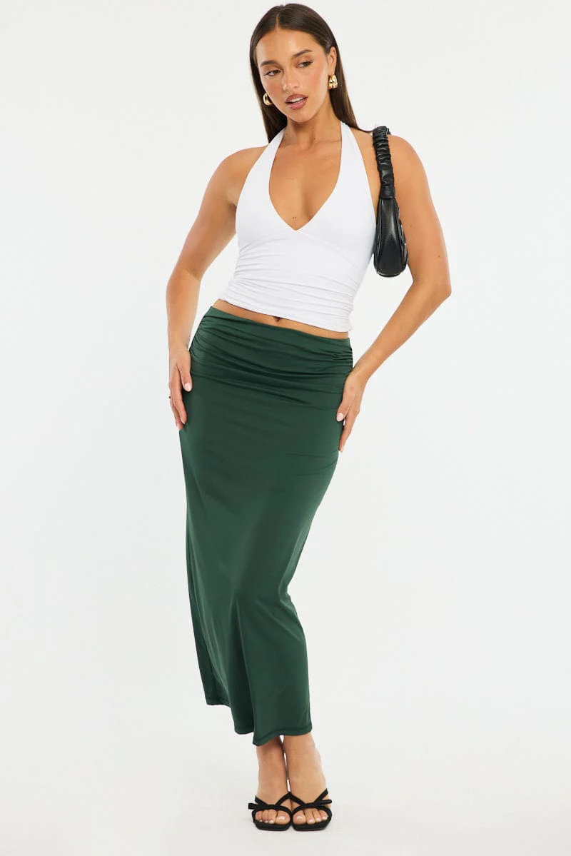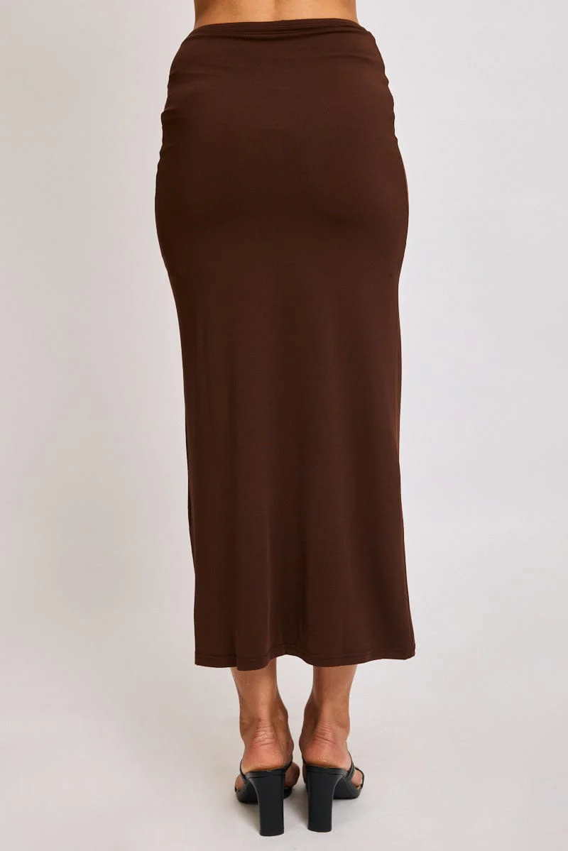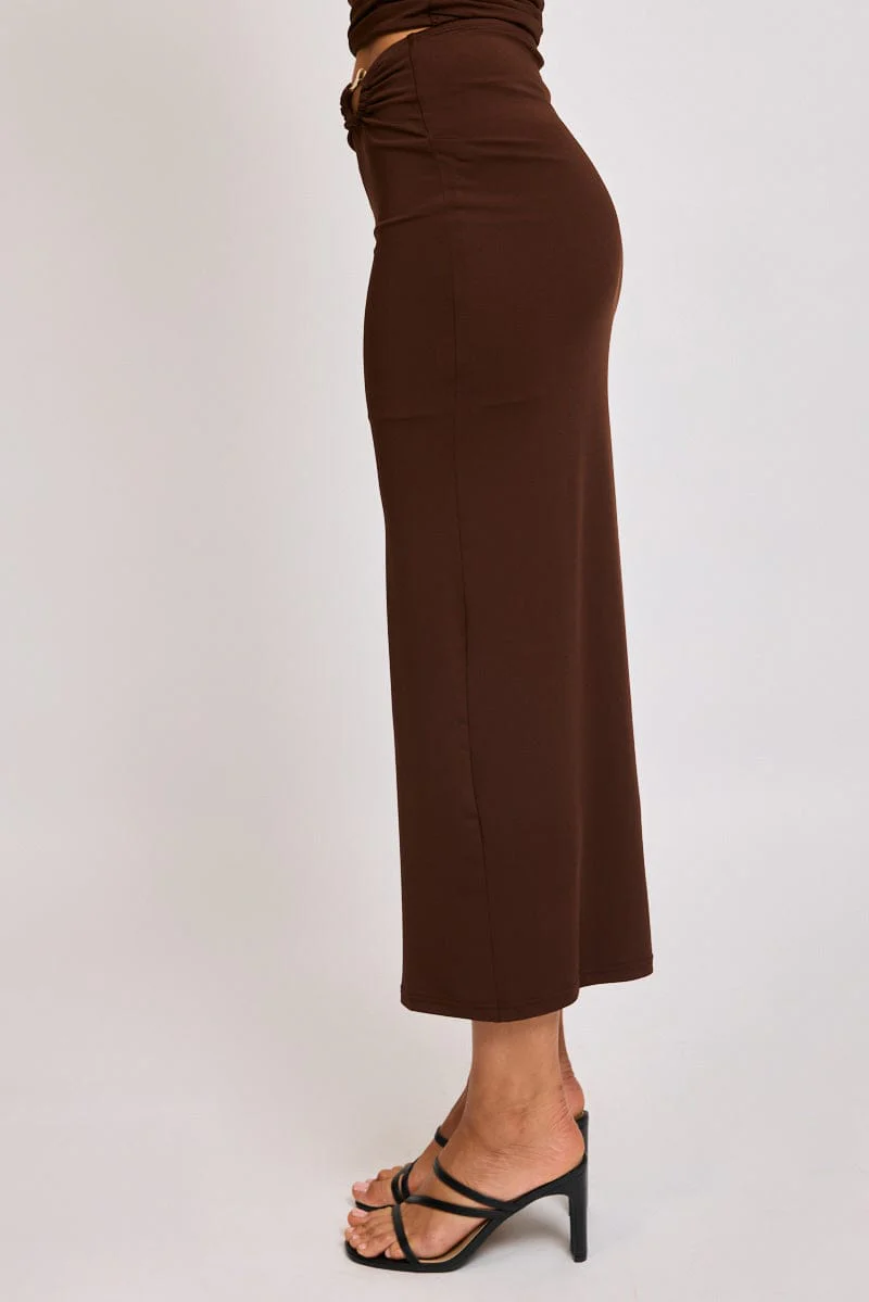 Brown Hardware Buckle Maxi Skirt Elastic Waist Lined