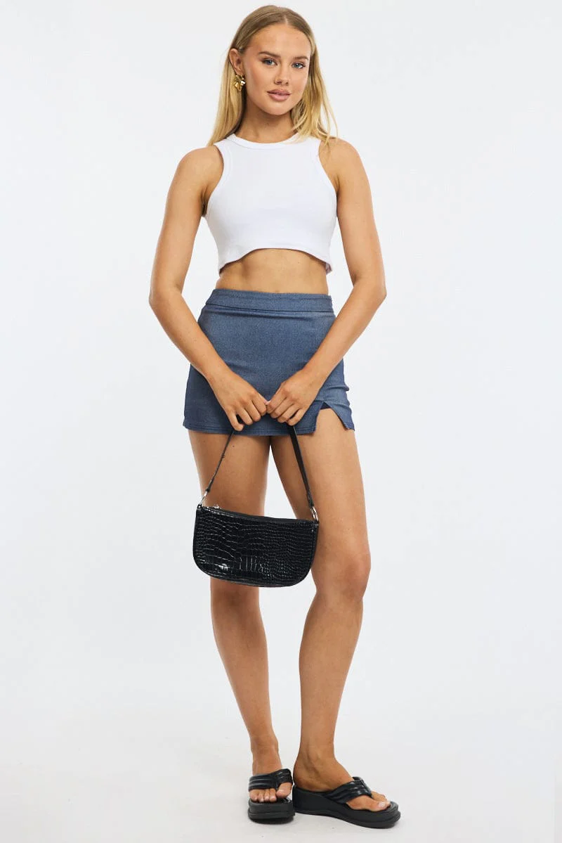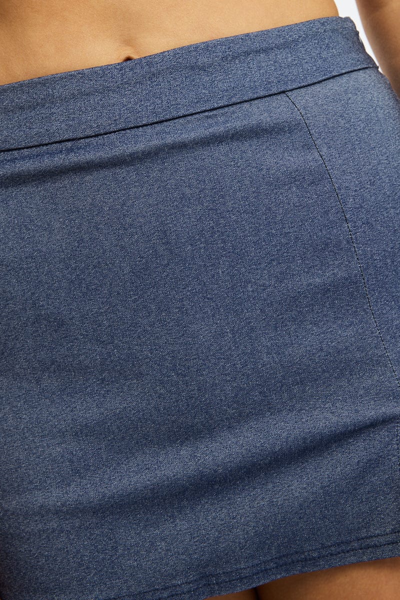 Denim Mini Skort High Rise Front Split Begaline Lined