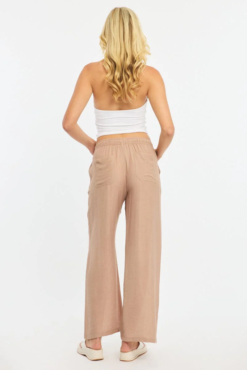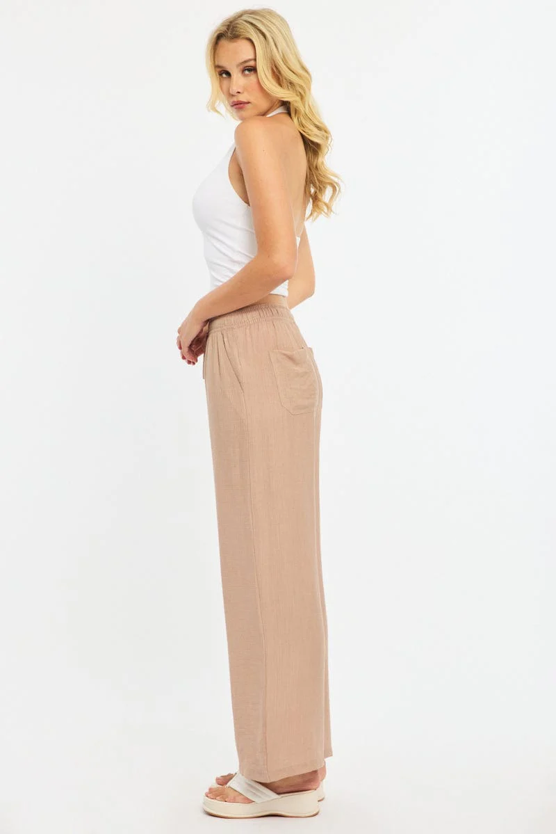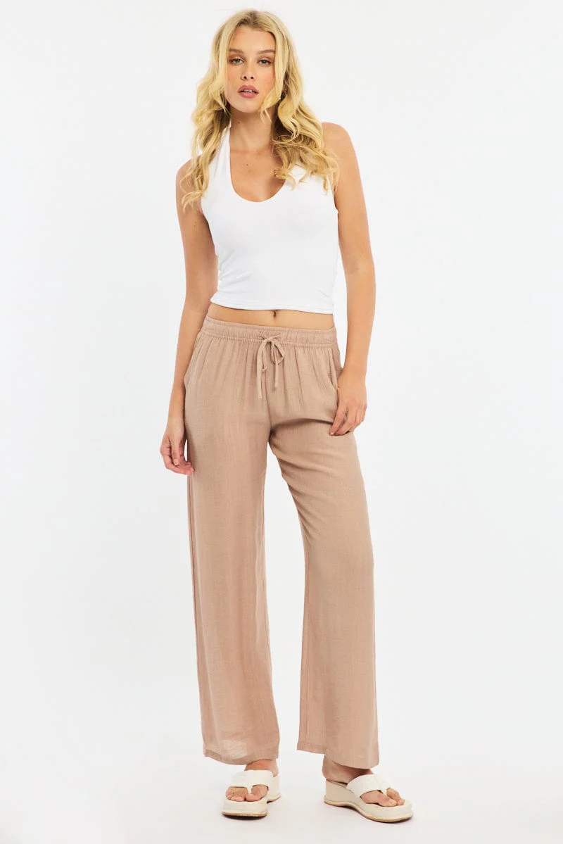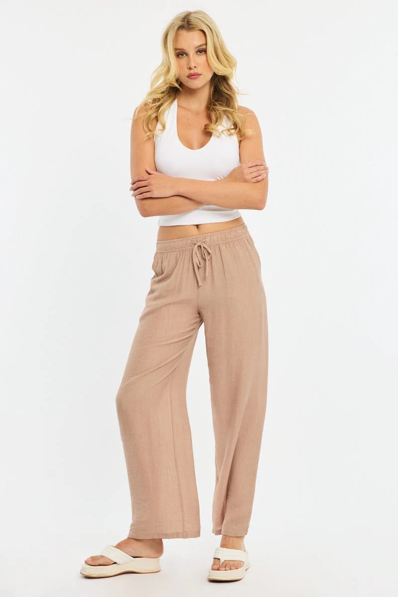 Beige Stripe Wide Leg Pants Elasticated Waist