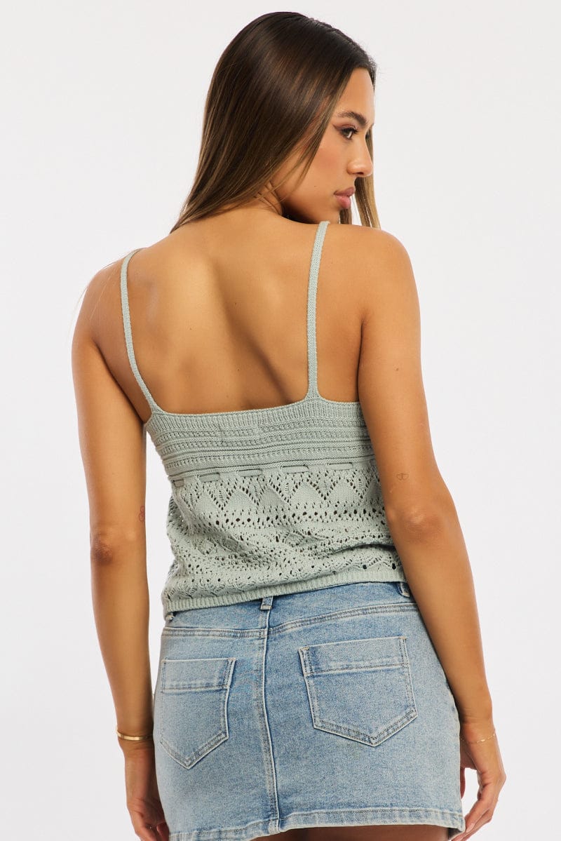 Green Crochet Top Tie Front