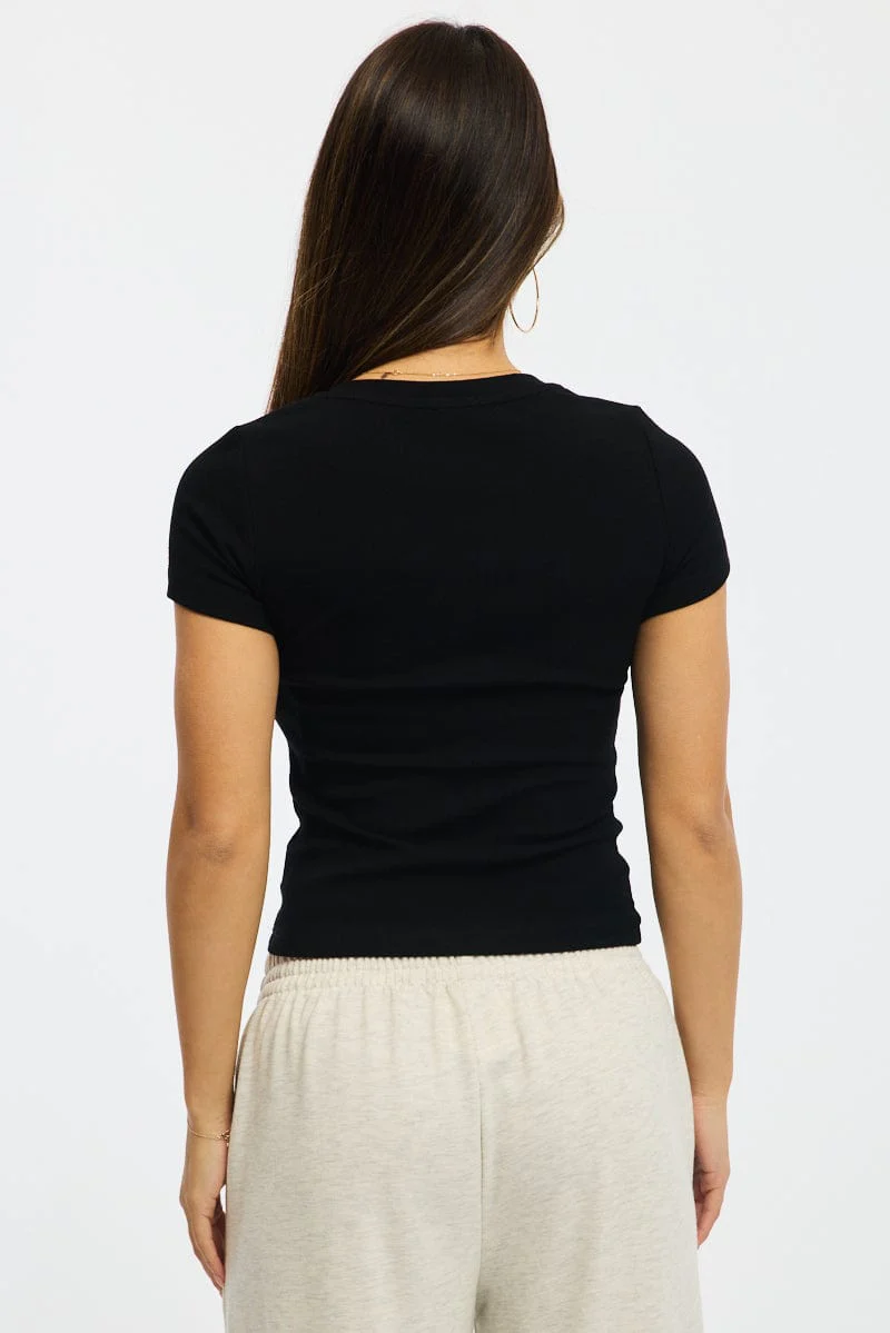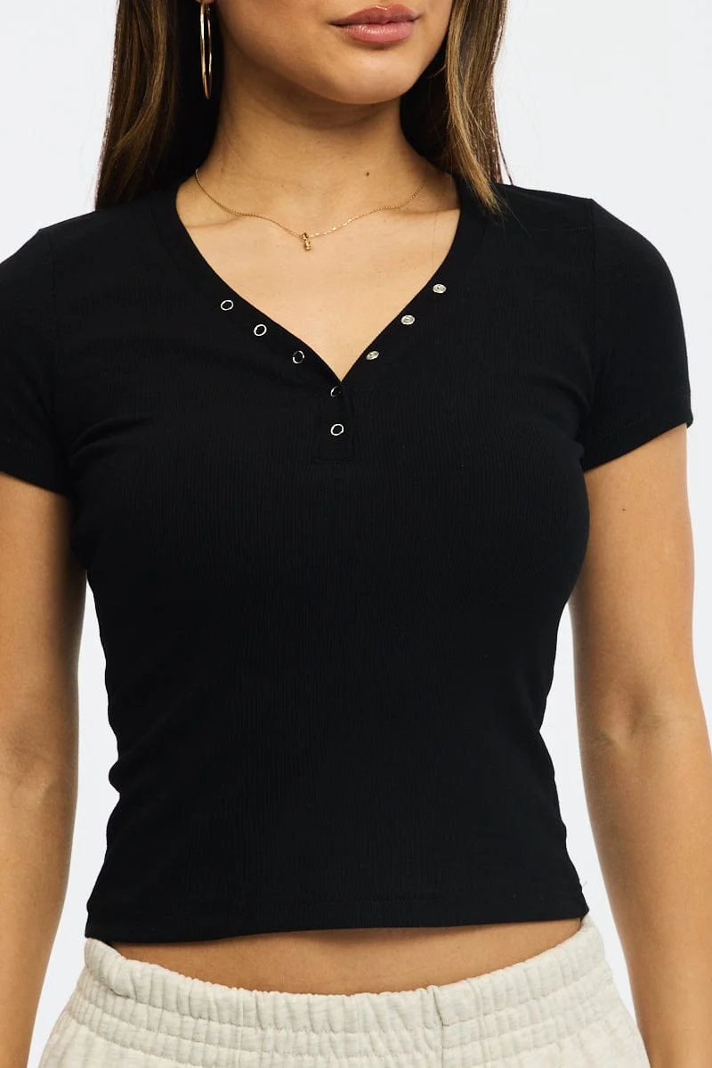 Black Henley Top Short Sleeve