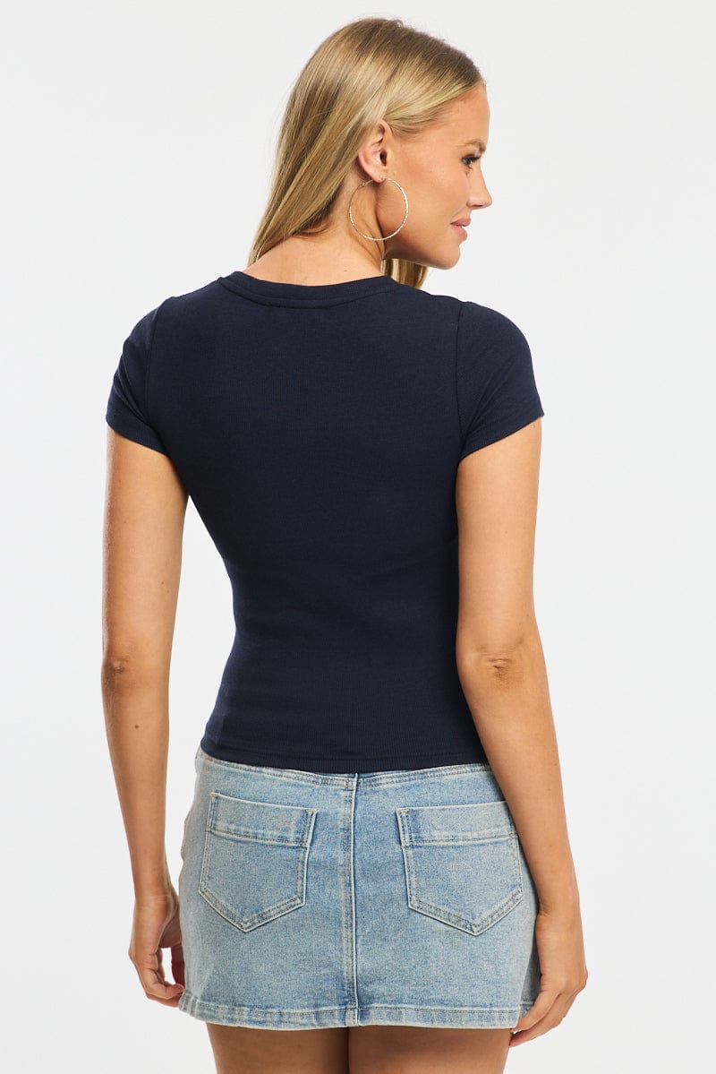 Blue Henley Top Short Sleeve
