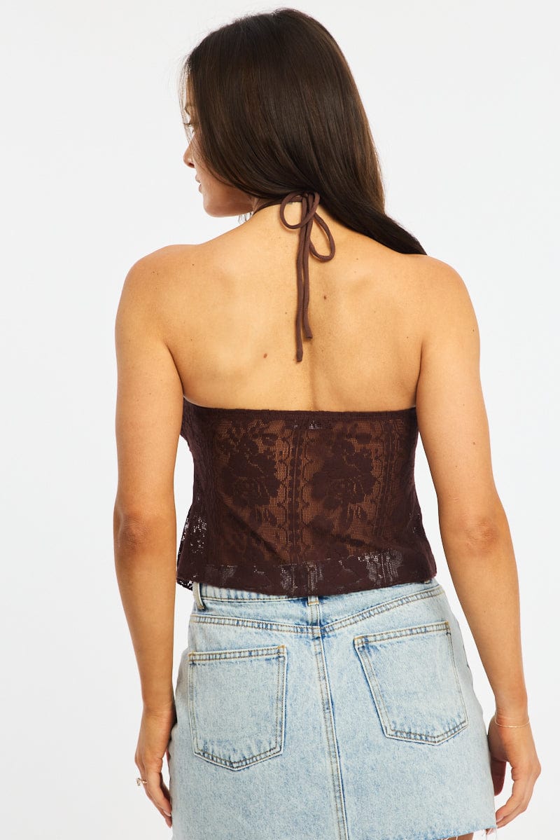 Brown Halter Top Sleeveless Lace