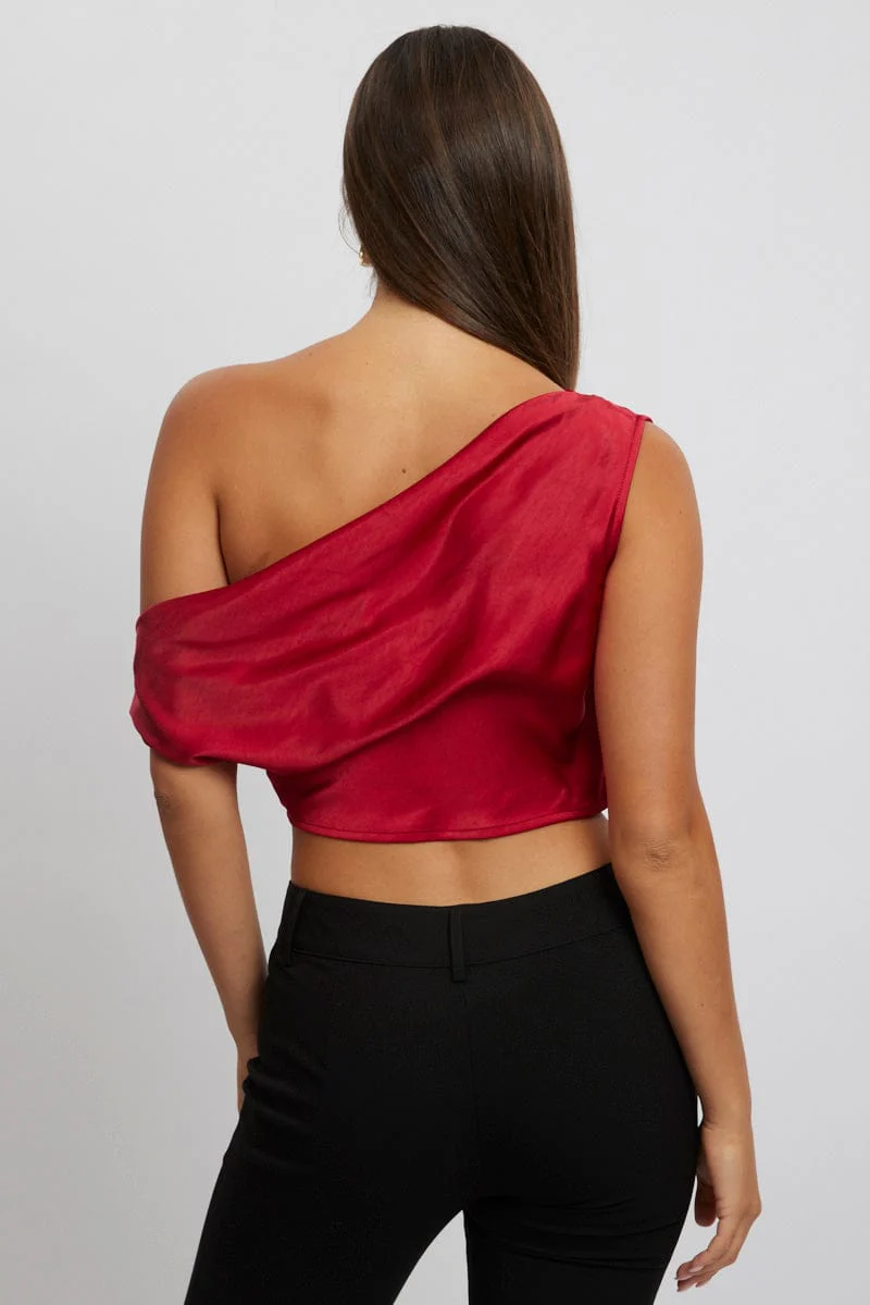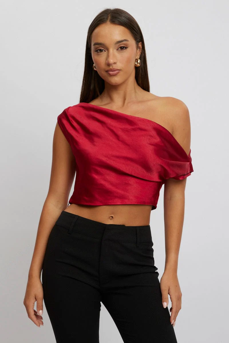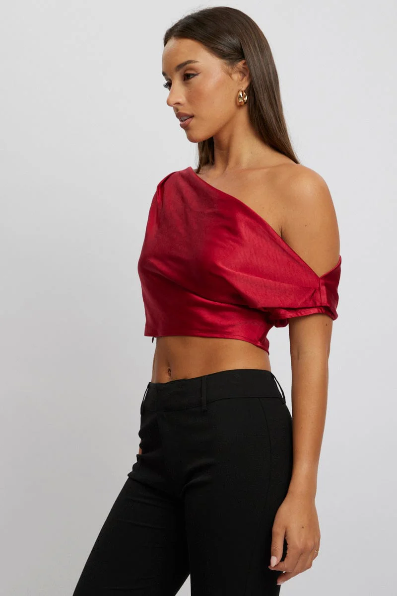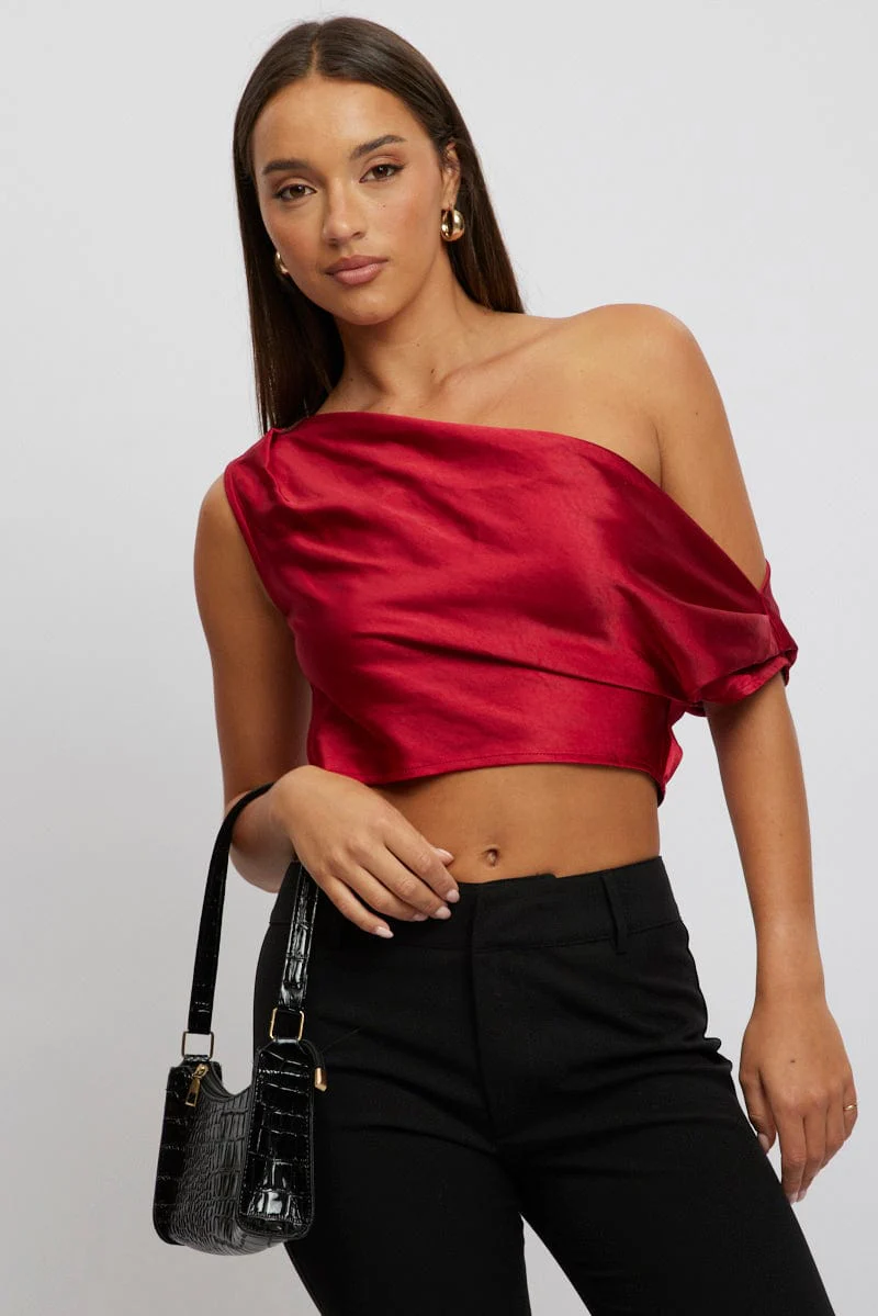 Red On Off Shoulder Satin Top