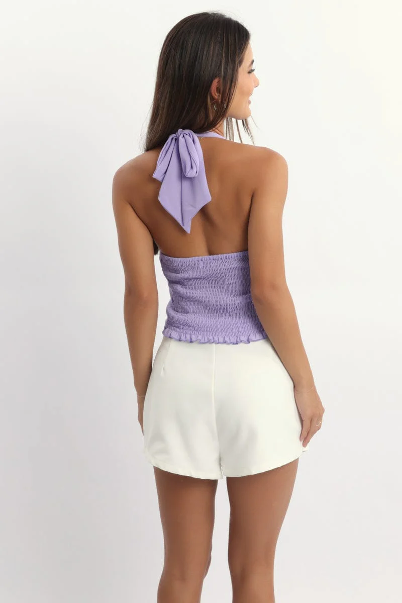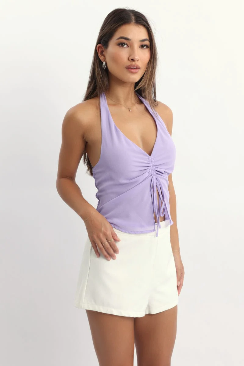 Purple Halter Top Sleeveless Ruched Front