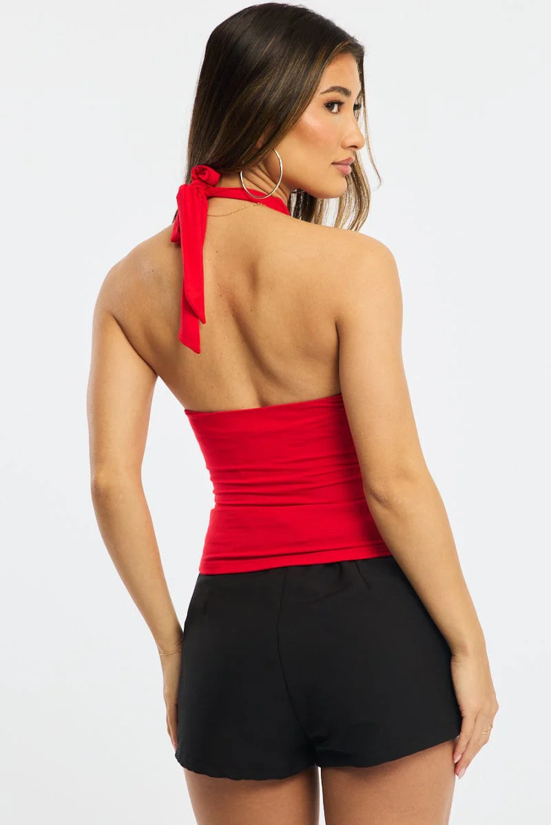 Red Halter Neck Top Supersoft