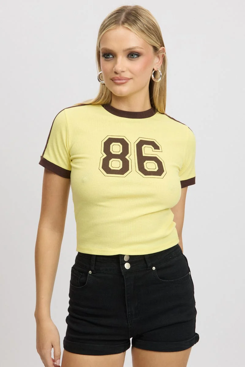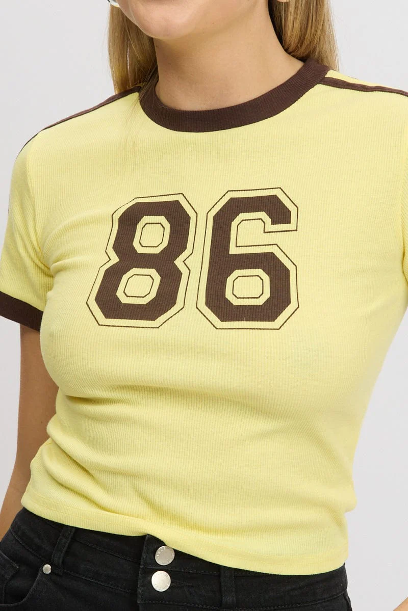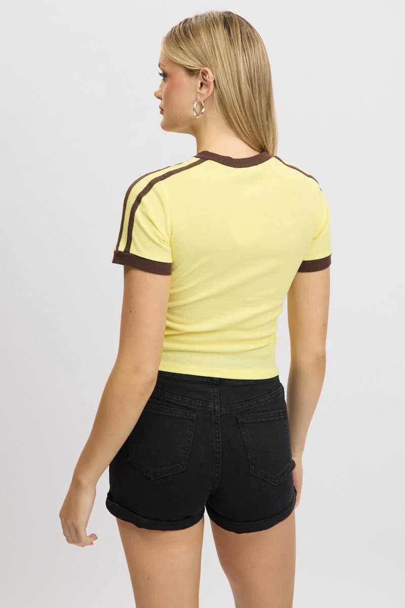 Yellow Graphic Tee Short Sleeve Contrast Binding