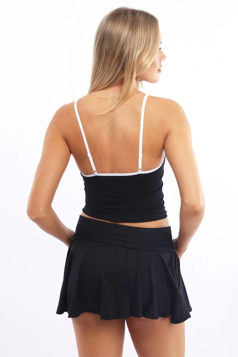 Black Singlet Top Contrast Binding Seamless