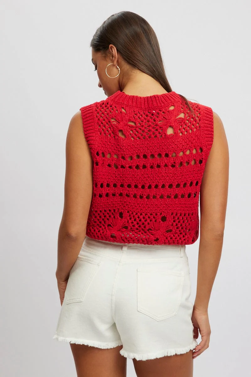 Red Crochet Knit Tank Top