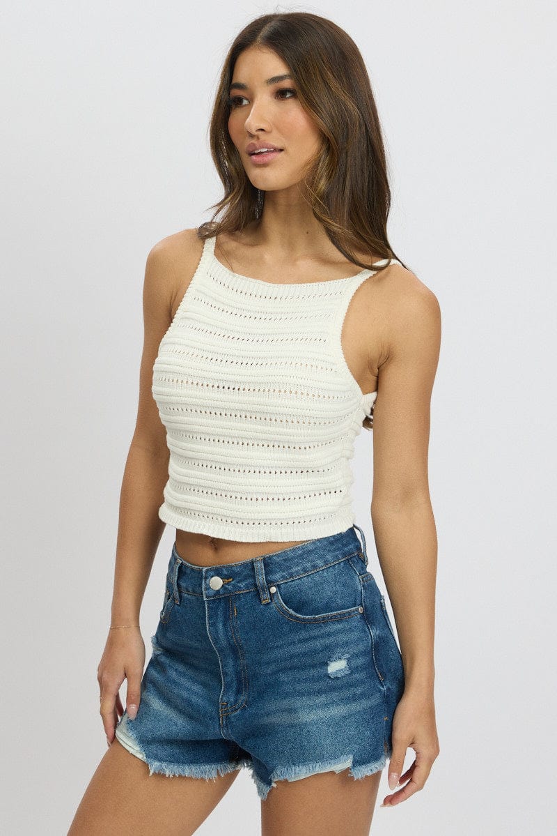 White Crochet Knit Tank Top