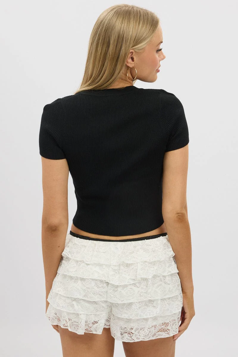 Black Knit Top Short Sleeve