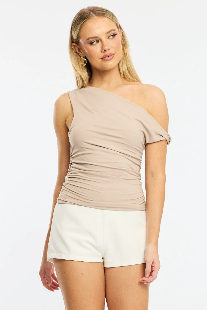 Brown Seamless Zip Top And Bike Shorts Activewear Set