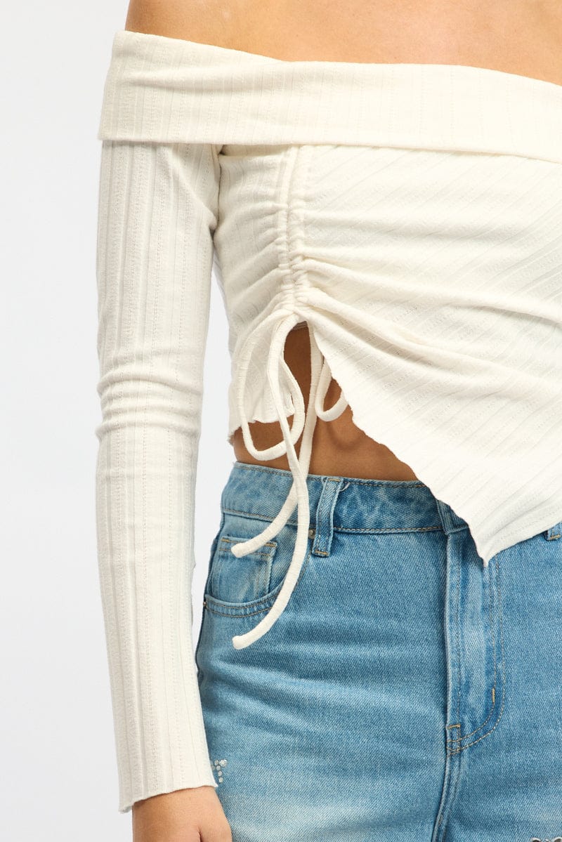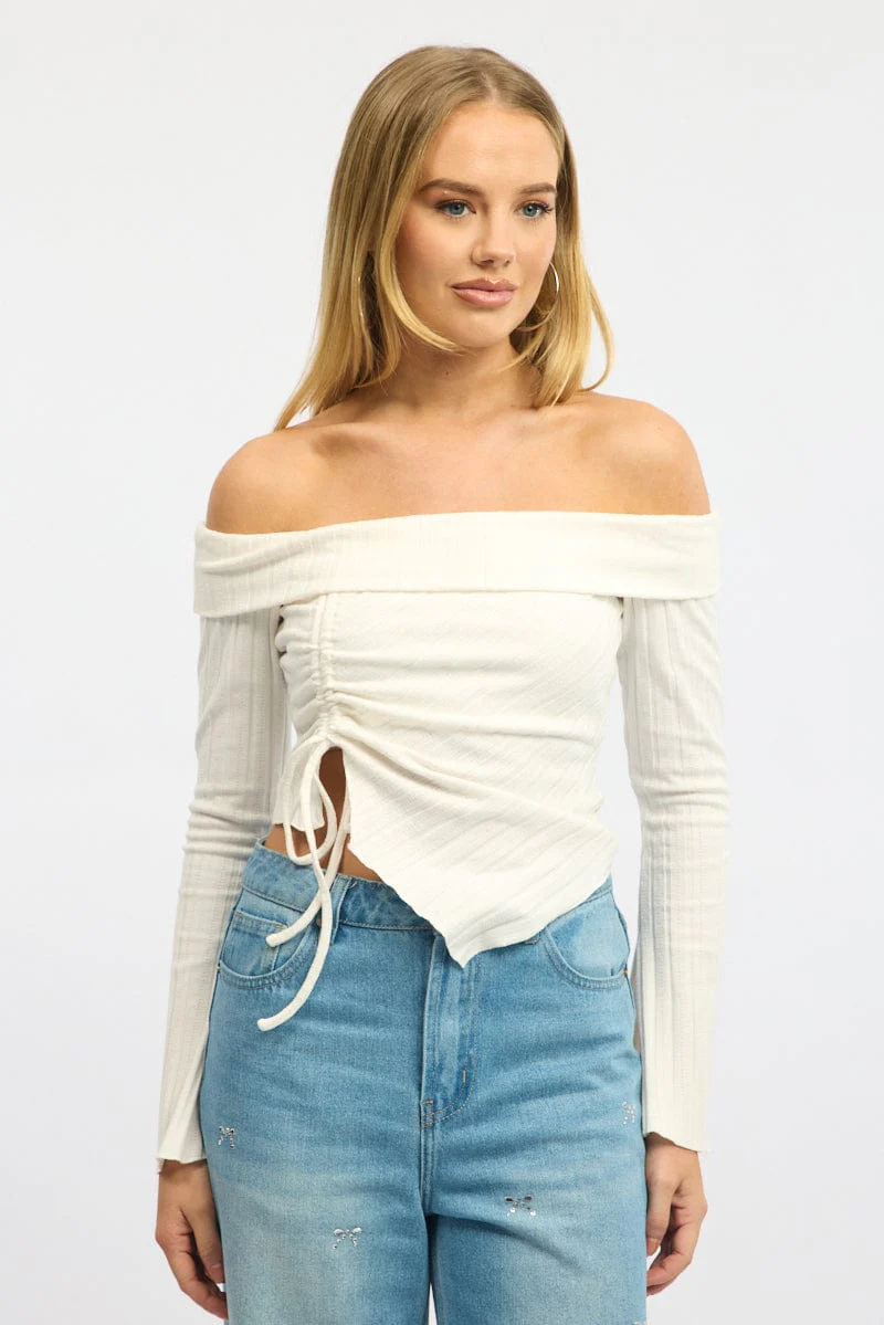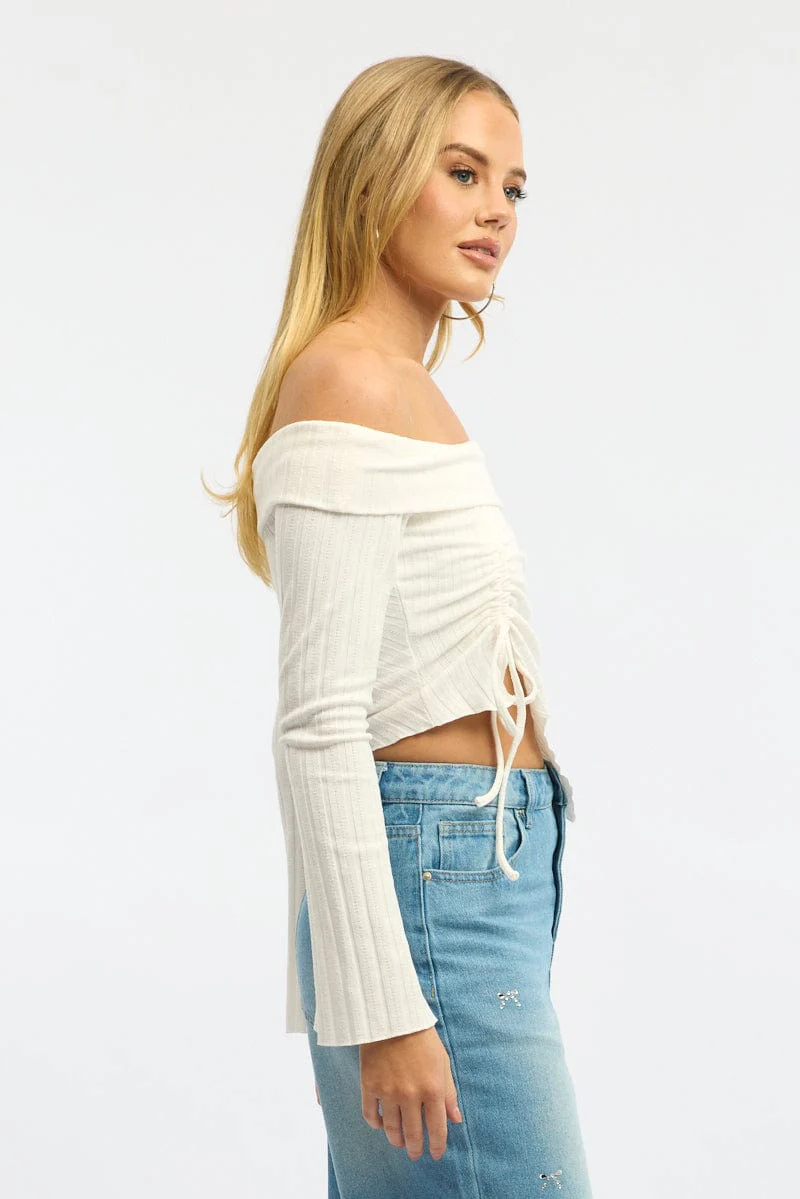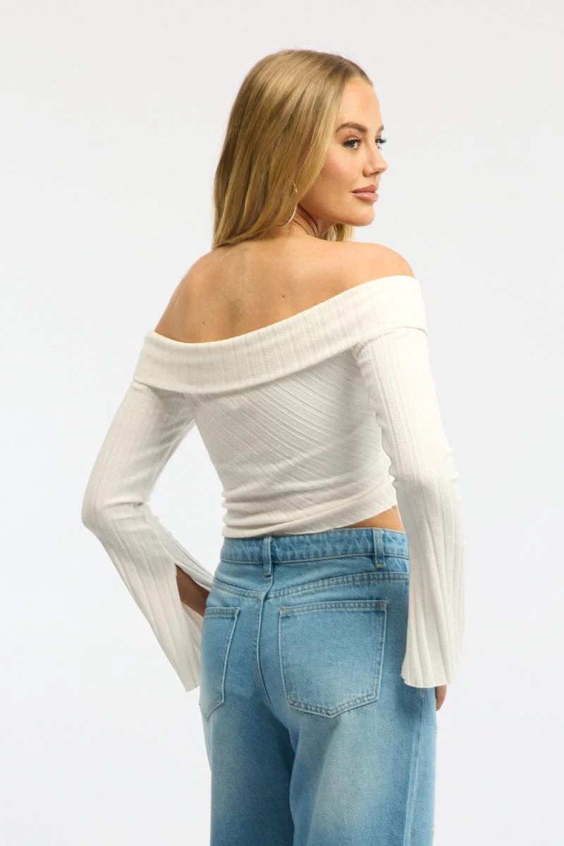 Green Cable Knit Top Long Sleeve Off Shoulder