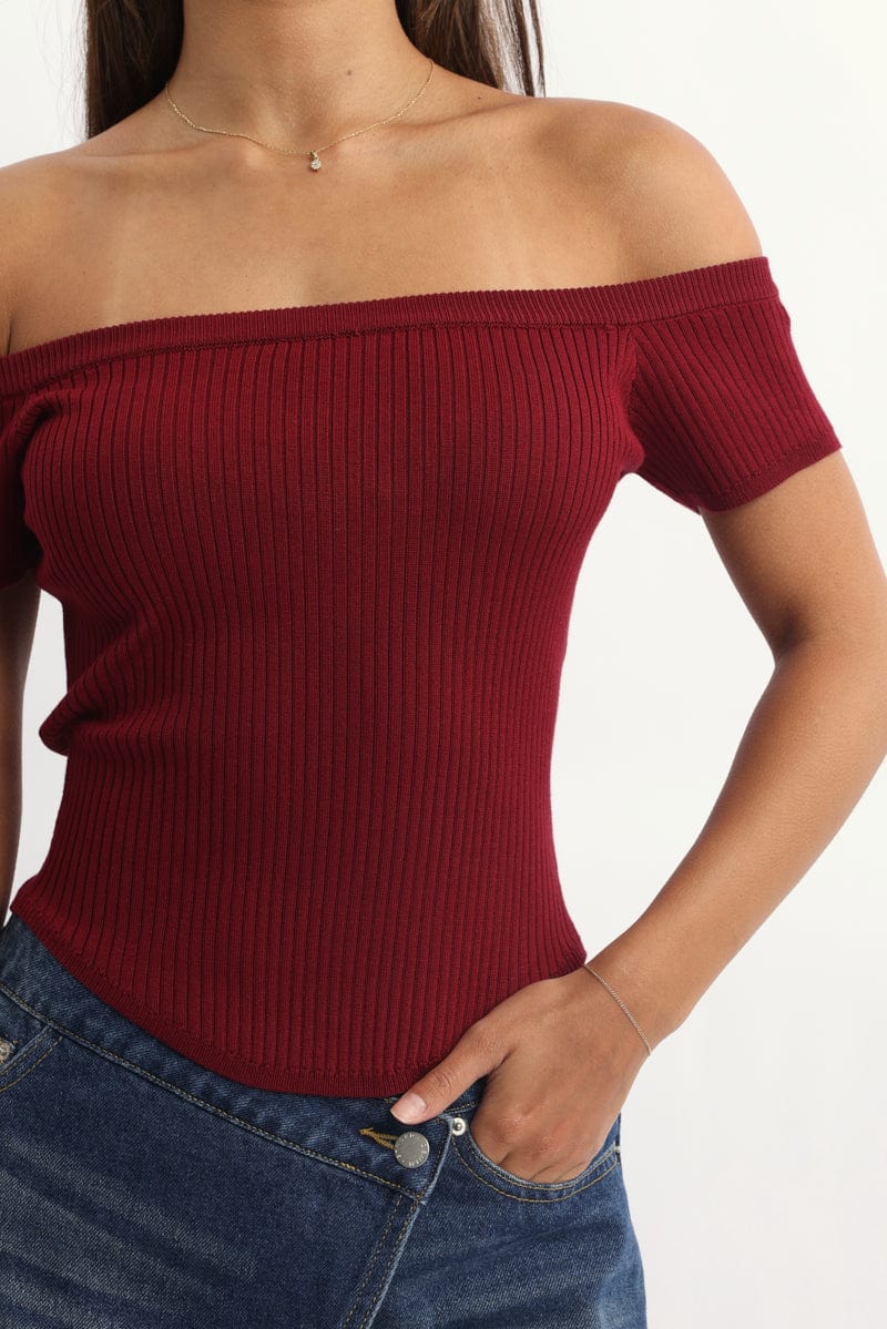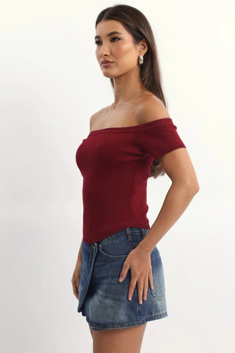 Red Bardot Knit Top Short Sleeve